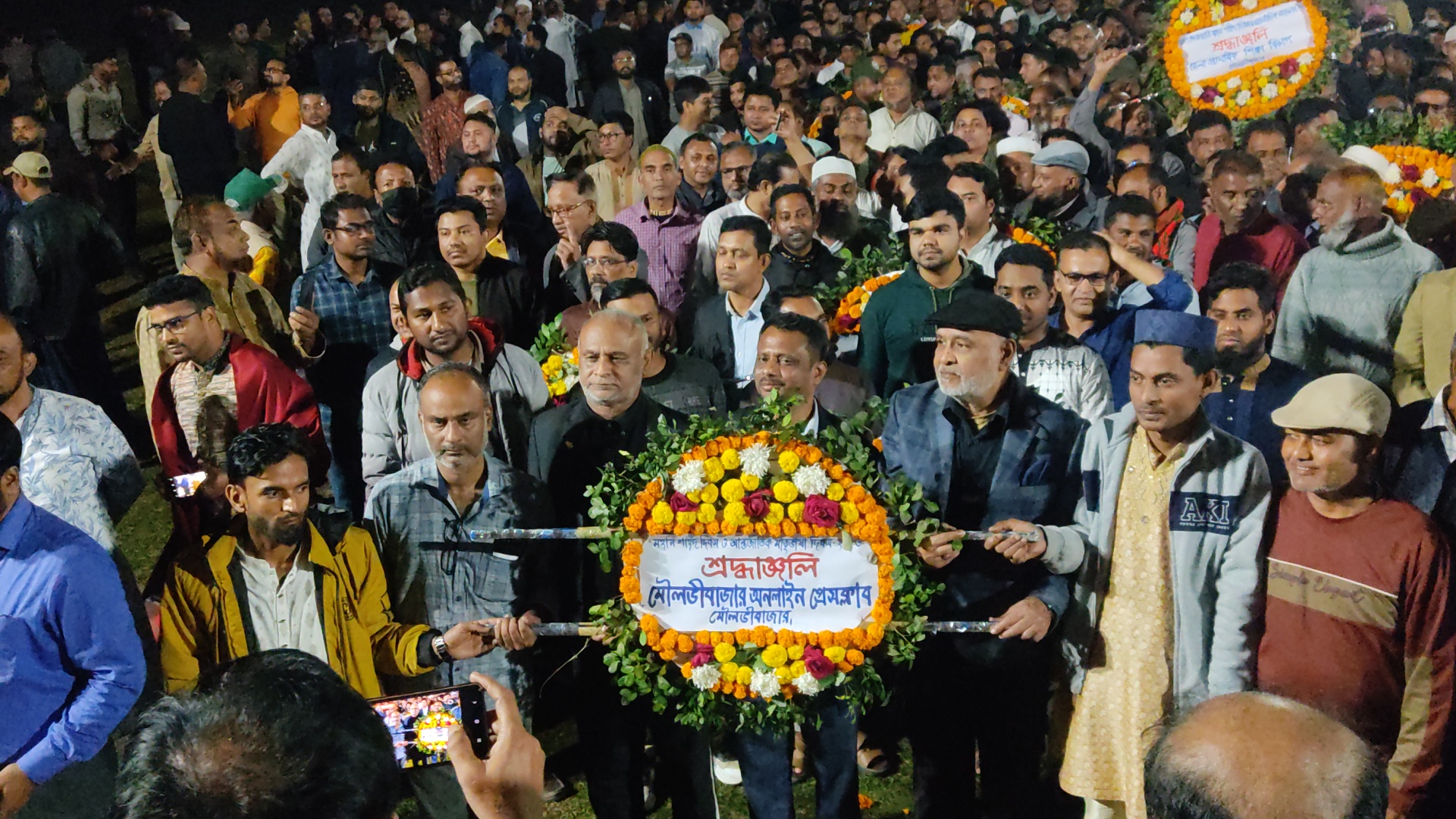 মৌলভীবাজার প্রতিনিধি : মহান শহীদ দিবস ও আন্তর্জাতিক মাতৃভাষা দিবস-২০২৬ উপলক্ষ্যে, ভাষা শহিদদের স্বরণে মৌলভীবাজার কেন্দ্রীয় শহীদ মিনারে ফুল দিয়ে শ্রদ্ধা নিবেদন করেছেন, মৌলভীবাজার অনলাইন প্রেসক্লাব নেতৃবৃন্দ। এ সময় উপস্থিত ছিলেন- মৌলভীবাজার অনলাইন প্রেসক্লাবের সভাপতি খালেদ চৌধুরী (হেডঅব নিউজ, চ্যানেল এস), সহ সভাপতি জোসেপ আলী চৌধুরী (দৈনিক নয়া বঙ্গবাজার), সহ সভাপতি অঞ্জন প্রসাদ রায় চৌধুরী (দৈনিক জনতার খবর), সাধারণ সম্পাদক মোঃ মশাহিদ আহমদ (দৈনিক আমাদের কণ্ঠ/দৈনিক সিলেট বাণী), সহ-সাধারণ সম্পাদক রিপন আহমদ (দৈনিক আজকের জণবানী), দপ্তর সম্পাদক মঈনুল হক (দৈনিক ঘোষণা, ষ্টাফ রির্পোটার), অর্থ সম্পাদক আব্দুল মুকিত ইমরাজ (দৈনিক জনতার দলিল), ক্রীড়া ও সাংস্কৃতিক সম্পাদক খালেদ আহমদ সামির (স্বাধীন বাংলা টিভি), প্রচার ও প্রকাশনা সম্পাদক জাহেদুল ইসলাম পাপ্পু (আমার কুলাউড়া), নির্বাহী সদস্য- চিনু রঞ্জন তালুকদার (দৈনিক গণমুক্তি (জেলা প্রতিনিধি), শাহ মোঃ ফজলুর রহমান (দৈনিক আলোকিত সকাল), তাওহীদ ইসলাম (দৈনিক গণমুক্তি (মৌলভীবাজার সদর) প্রমুখ। একুশের প্রথম প্রহরে ভাষা শহীদদের ফুল দিয়ে শ্রদ্ধা জানাতে শহীদ মিনারে সর্বস্থরের হাজারো মানুষের ঢল নামে। রাত ১২টা ১ মিনিটে একে একে শহরের সরকারি উচ্চ বিদ্যালয় মাঠ প্রাঙ্গনে স্থাপিত শহীদ মিনারে ফুল দিয়ে শ্রদ্ধা নিবেদন করেন, জেলা প্রশাসক, পুলিশ সুপার, জেলা বিএনপি, মৌলভীবাজার প্রেসক্লাব, ফায়ার সার্ভিস, আনসার ভিডিপি, ছাত্রদল, যুবদল, কৃষকদল, সড়ক ও জনপথ বিভাগ, এলজিইডি, বিদ্যুত উন্নয়ন বোর্ড, পানি উন্নয়ন বোর্ড, গণঃপুর্ত বিভাগ, সদর হাসপাতাল, কৃষি সম্প্রসারণ অধিদপ্তর, যুব উন্নয়ন অধিদপ্তরসহ বিভিন্ন শিক্ষা প্রতিষ্ঠান, সরকারি বেসরকারি প্রতিষ্ঠান সহ বিভিন্ন রাজনৈতিক, সামাজিক, সাংস্কৃতিক ও পেশাজীবি সংগঠন।