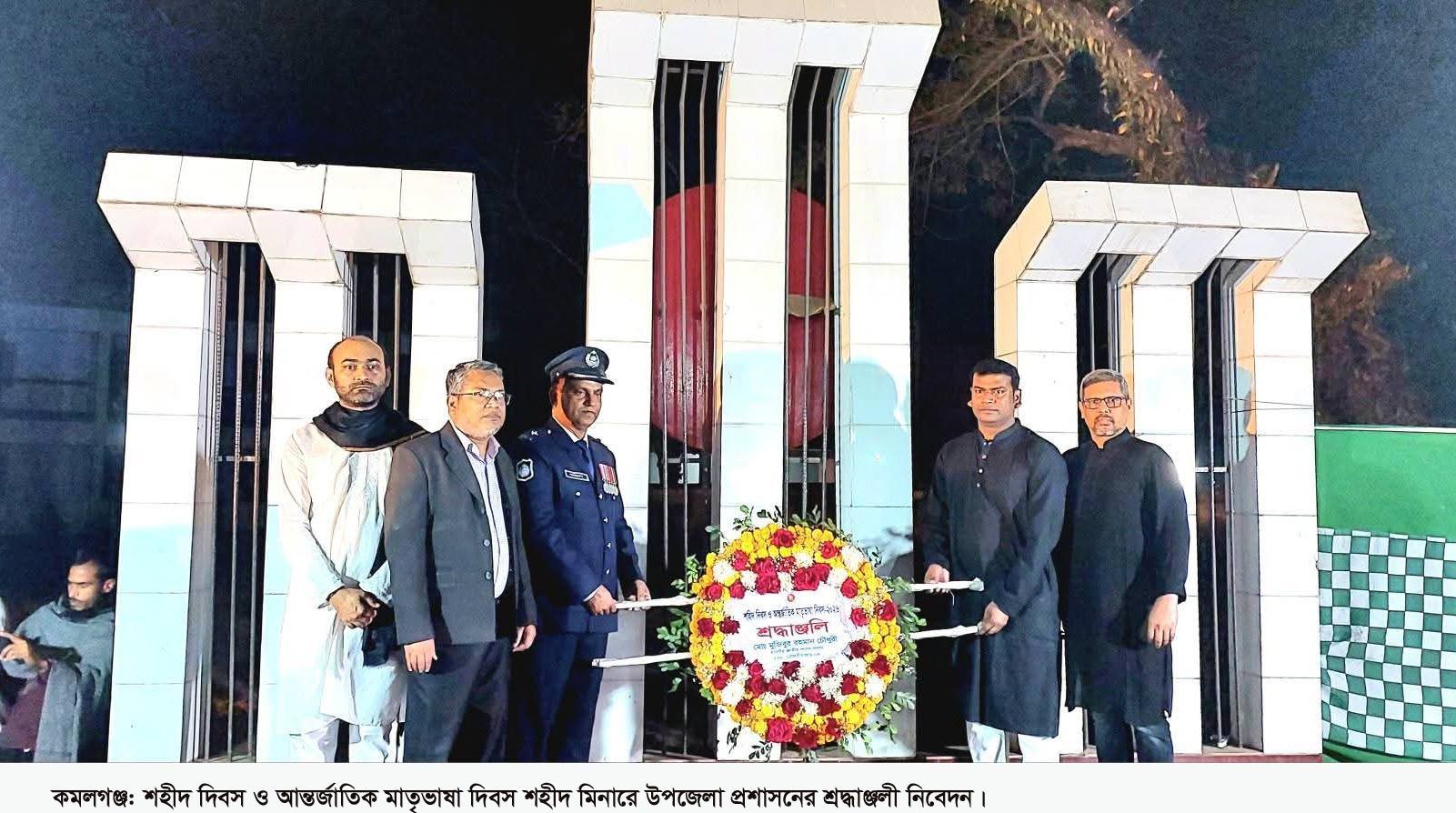 মৌলভীবাজারের কমলগঞ্জে মহান শহীদ দিবস ও আন্তর্জাতিক মাতৃভাষা দিবস উপলক্ষে একুশের প্রথম প্রহরে শনিবার রাত ১২.০১ মিনিটে কমলগঞ্জ উপজেলা কেন্দ্রীয় শহীদ মিনারে ভাষা শহীদদের প্রতি বিনম্র শ্রদ্ধা নিবেদন করেছে উপজেলা প্রশাসন, বীর মুক্তিযোদ্ধা, পুলিশ, উপজেলা ও পৌর বিএনপি, কমলগঞ্জ প্রেসক্লাব, রিপোর্টার্স ইউনিটিসহ বিভিন্ন রাজনৈতিক, সামাজিক ও সাংস্কৃতিক সংগঠনের পক্ষ থেকে ভাষা শহীদদের প্রতি শ্রদ্ধা জানানো হয়। শ্রদ্ধা নিবেদন শেষে ভাষা শহীদদের রুহের মাগফিরাত কামনায় বিশেষ দোয়া অনুষ্ঠিত হয়। পরে শহীদ মিনার সর্বসাধারণের জন্য উন্মুক্ত করে দেওয়া হলে বিভিন্ন স্কুল-কলেজ, সরকারি-বেসরকারি প্রতিষ্ঠান, রাজনৈতিক ও সামাজিক সংগঠন, এনজিও এবং নানা শ্রেণি-পেশার মানুষ ফুল দিয়ে শ্রদ্ধা জানান।