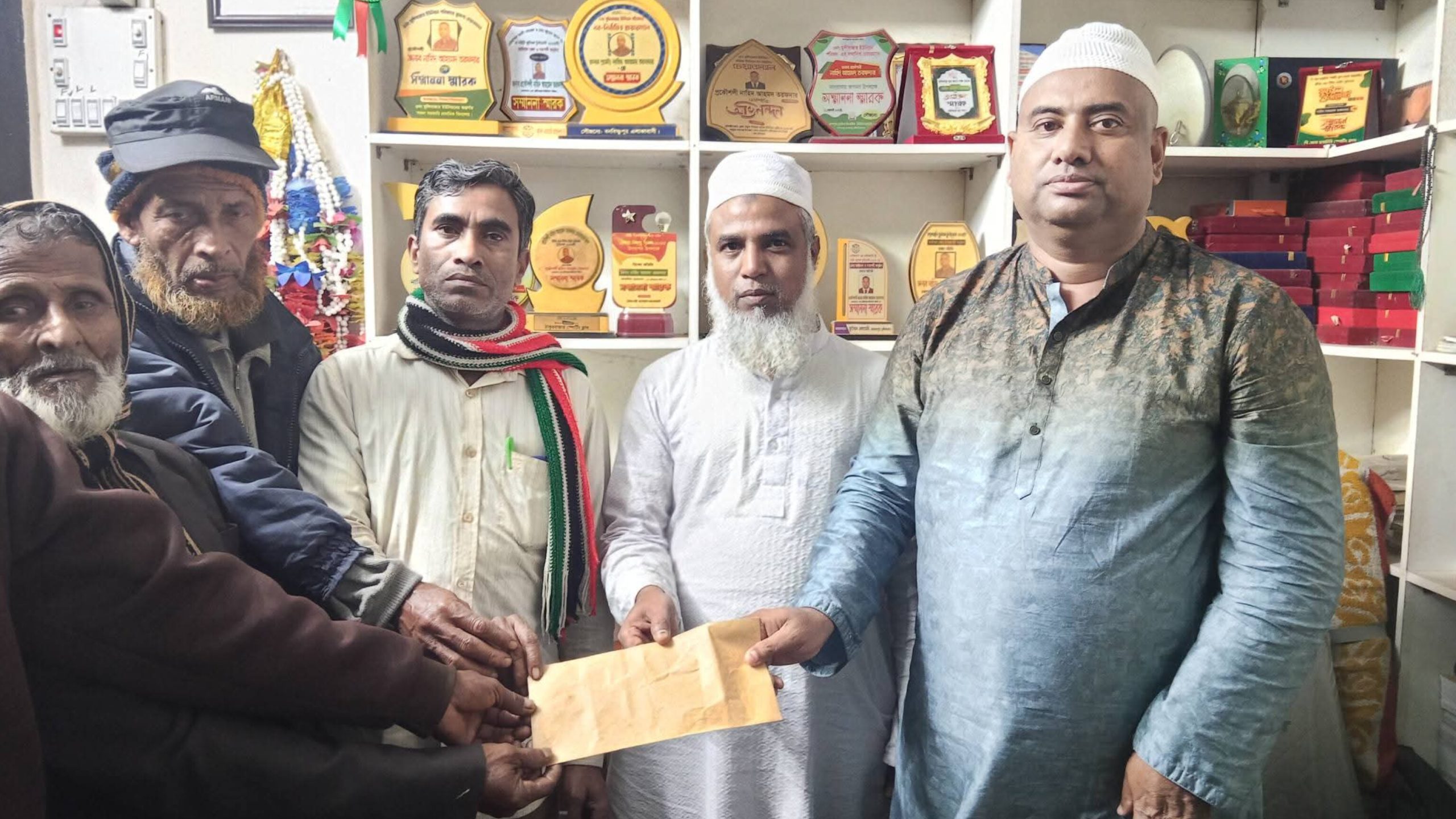 মৌলভীবাজার জেলার কমলগঞ্জ উপজেলার ৩ নং মুন্সীবাজার ইউনিয়ন পরিষদের চেয়ারম্যান প্রকৌশলী নাহিদ আহমদ তরফদার উপজেলা প্রশাসন হইতে ঈদ উপলক্ষে প্রাপ্ত (চেয়ারম্যানের সম্মানী ভাতা) মুন্সীবাজারের নৈশপ্রহরী , হিসাব সহকারী , পরিচ্ছন্ন কর্মী মোট ১৪ জনের মাঝে এ টাকা ঈদ বোনাস হিসেবে বিতরণ করেন। চেয়ারম্যান নাহিদ আহমদ তরফদার নির্বাচনের আগে প্রতিশ্রুতি দিয়েছিলেন তিনি সরকার থেকে উনার নামে যে সম্মানী ভাতা প্রাপ্ত হবেন সব টাকা মসজিদ মাদ্রাসা মন্দির ও জনকল্যাণমূলক কাজে ব্যয় করবেন তারই ধারাবাহিকতায় পবিত্র ঈদুল ফিতর উপলক্ষে প্রাপ্ত সম্মানী ভাতা ২০ মার্চ রাতে মুন্সিবাজারস্থ উনার অফিসে নৈশপ্রহরী পরিচ্ছন্ন কর্মী হিসাব সহকারীদের মাঝে বিতরণ করেন। এসময় উপস্থিত ছিলেন মুন্সিবাজার ব্যবসায়ী সমিতির সহ-সভাপতি মাওলানা মাশহুদ আহমদসহ স্থানীয় গণ্যমান্য ব্যক্তিবর্গ। চেয়ারম্যান নাহিদ আহমদ তরফদার জানান, আমরা সবাই মিলে একে অন্যের পাশে দাড়াই , ঈদের আনন্দ ভাগাভাগি করে নেই। ভালো থাকুক আমার প্রিয় বাজার বাসী , ইউনিয়ন বাসী ।