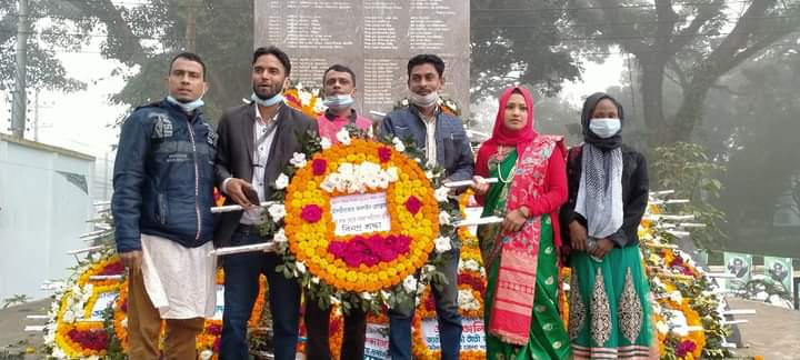 মৌলভীবাজার প্রতিনিধি : ৪৯তম মহান বিজয় দিবস-২০২০ ইং উপলক্ষ্যে র্যালী ও কেন্দ্রীয় শহীদ মিনারে পুষ্পস্তবক অর্পন করেছে মৌলভীবাজার অনলাইন প্রেসক্লাব আজ ১৬ ডিসেম্বর সকালে। মৌলভীবাজার অনলাইন প্রেসক্লাবের সাধারণ সম্পাদক মশাহিদ আহমদ এর নেতৃত্বে র্যালিটি চৌমোহনাস্থ অনলাইন প্রেসক্লাব থেকে শুরু হয়ে গুরুত্বপূর্ণ সড়ক প্রদক্ষিণ শেষে মৌলভীবাজার সরকারী উচ্চ বিদ্যালয় মাঠ কেন্দ্রীয় শহীদ মিনারে এসে শেষ হয়। র্যালি শেষে শহীদ মিনারে পুষ্পস্তবক অর্পন করেন প্রেসক্লাবের নেতৃবৃন্দ। এ সময় অন্যান্যদের মধ্যে উপস্থিত ছিলেন- জেলা সম্মিলিত সামাজিক উন্নয়ন পরিষদ এর সভাপতি ও বিশিস্ট সমাজসেবক খালেদ চৌধুরী, মৌলভীবাজার অনলাইন প্রেসকা¬বের সভাপতি মো: জাফর ইকবাল, সংগঠনিক সম্পাদক আব্দুল বাছিত খাঁন, অর্থ সম্পাদক মুকিত ইমরাজ, সহ-সাংগঠনিক চিনু রঞ্জন দাশ তালুকদার, গিয়াস আহমদ, বধরুল আলম চৌধুরী, জাহেদুল ইসলাম পাপ্পু, জোবায়ের আহমদ,সৈয়দ মোয়াজ্জেম হোসেন, শাহ ফজলুর রহমান, নাছরিন আক্তার, মাসুদ আলম চয়ন, মোঃ জাহাঙ্গীর, যাদু মনি ধর, সোহেল আহমদসহ মৌলভীবাজার অনলাইন প্রেসক্লাবের সদস্যবৃন্দ।