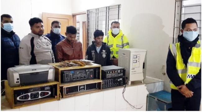 অগ্রযাত্রা সংবাদ : মৌলভীবাজারের কমলগঞ্জ উপজেলার জুয়েল টেলিকম সাউন্ড সিস্টেম ও এন্ড মাইক সার্ভিস থেকে চুরি হওয়া মালামাল ২০ দিন পর জ্যেষ্ঠ সহকারী পুলিশ সুপার আশরাফুজ্জামানের নেতৃত্বে পুলিশের একটি দল উদ্ধার করেছে।মঙ্গলবার ভোররাতে শ্রীমঙ্গল উপজেলার সিন্দুর খান ইউনিয়নের বেলতলী গ্রামের একটি বাড়ি থেকে চুরি হওয়া মালামাল উদ্ধার করা হয়। এসময় একটি সিএনজি চালিত অটোরিকশা উদ্ধারসহ ঘটনার সাথে জড়িত ৩ চোরকে আটক করেছে পুলিশ।জানা গেছে, গত ২ ডিসেম্বর উপজেলার ফুলবাড়ি চা বাাগনের জুয়েল টেলিকম সাউন্ড সিস্টেম এন্ড মাইক সার্ভিসের দোকানে চুরি সংগঠিত হয়। দোকানের মালিক জুয়েল আহমদ কমলগঞ্জ থানায় অভিযোগ দিলে পুলিশ মালামাল উদ্ধার ও জড়িতদের গ্রেপ্তারে তৎপর হয়। প্রায় ২০ দিন পর গোপন সংবাদে কমলগঞ্জ-শ্রীমঙ্গল সার্কেলের জ্যেষ্ঠ সহকারী পুলিশ সুপার মো. আশরাফুজ্জামানের নেতৃত্বে মঙ্গলবার রাতে কমলগঞ্জ থানার ওসি মো. আরিফুর রহমান, পুলিশ পরিদর্শক (তদন্ত) সোহেল আহমেদ, উপ-পরিদর্শক (এসআই) অনিক বড়ুয়াসহ একদল পুলিশ সিন্দুরখান ইউনিয়নের বেলতলী গ্রামে অভিযান পরিচালনা করেন। অভিযানে বেলতলী গ্রামের রাসেল মিয়ার (২৬) বাড়ি থেকে কমলগঞ্জের ফুলবাড়ি চা বাগানের চুরি হওয়া অটো ভলটেজ স্টেভিলাইজার, একটি মিকচার মেমিন, ৪টি প্রিন্টার, কয়েকটি মুঠোফোন, মুঠোফোনের অনেকগুলি ব্যাটারী, মাইকের একটি মেশিনসহ চোরাই মালামাল উদ্ধার করে। এছাড়া চোরাই কাজে ব্যবহৃত একটি সিএনজি চালিত অটোরিকশা (মৌলভীবাজার-ছ-১২-২৬৪৮) জব্দ করা হয়।এসময় চুরির ঘটনার সাথে জড়িত থাকার দায়ে কমলগঞ্জের ভানুগাছ বাজারের আব্দুর রাজ্জাকের ছেলে সোহেল (১৯) ও মাধবপুর ইউনিয়নের লঙ্গুরপার গ্রামের আছকির মিয়ার ছেলে মো. রউফ মিয়া (২৫) ও শ্রীমঙ্গল উপজেলার সিন্দুর খান ইউনিয়নের বেলতলী গ্রামের রাসেল মিয়াকে (২৬) পুলিশ আটক করে।কমলগঞ্জ থানার ভারপ্রাপ্ত কর্মকর্তা (ওসি) মো. আরিফুর রহমান ঘটনার সত্যতা নিশ্চিত করে বলেন, ‘এ ঘটনায় থানায় একটি নিয়মিত মামলা গ্রহণ করে আটককৃতদের এ মামলায় গ্রেপ্তার দেখিয়ে মঙ্গলবার দুপুরে মৌলভীবাজার আদালতের মাধ্যমে জেলা কারাগারে প্রেরণ করা হয়েছে’।