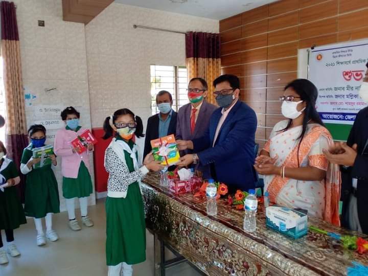 জোবায়ের আহমদঃ মৌলভীবাজার জেলার প্রাথমিক ও মাধ্যমিক পর্যায়ের শিক্ষার্থীদের মাঝে বিনামূল্যে পাঠ্যপুস্তক বিতরণ কার্যক্রমের শুভ উদ্বোধন করা হয়েছে। ১লা জানুয়ারি শুক্রবার সকালে মৌলভীবাজার শহরের আলী আমজাদ সরকারি প্রাথমিক বিদ্যালয় মাঠে শিক্ষার্থীদের মাঝে বই বিতরণ করেন মৌলভীবাজার জেলা প্রশাসক মীর নাহিদ আহসান। স্বাস্থ্যবিধি মেনে নতুন বছরের প্রথম দিনে মৌলভীবাজার জেলায় প্রাথমিক ও মাধ্যমিক শিক্ষার্থীদের হাতে নতুন বই তুলে দেওয়া হয়েছে।