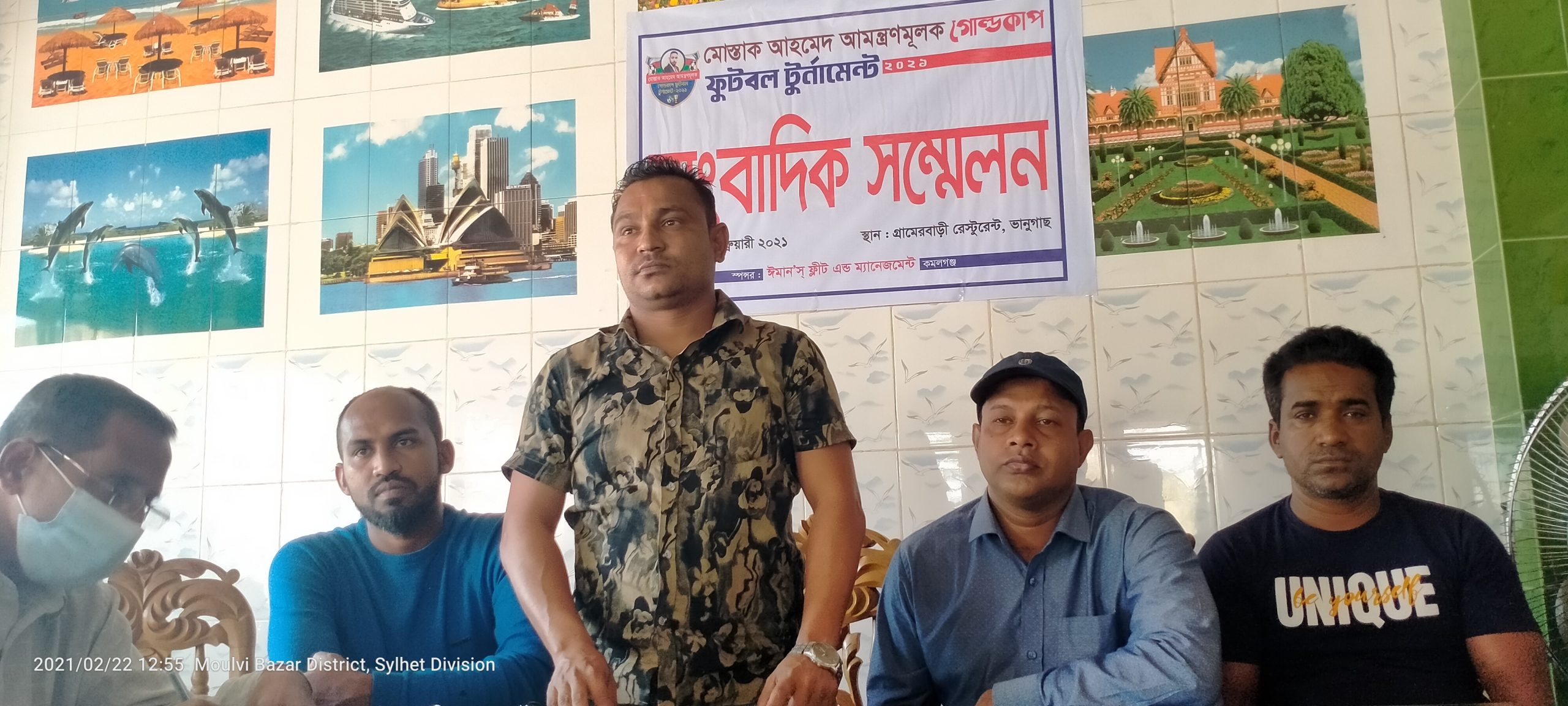 জেলা প্রতিনিধি, মৌলভীবাজার : মৌলভীবাজারের কমলগঞ্জের ভানুগাছ রেলওয়ে মাঠে কাল মঙ্গলবার (২৩ ফেব্রুয়ারি) থেকে শুরু হচ্ছে মোস্তাক আহমেদ আমন্ত্রণমূলক গোল্ডকাপ ফুটবল টুর্নামেন্ট ২০২১। এ উপলক্ষে সোমবার (২২ ফেব্রুয়ারি) ভানুগাছ বাজারে এক আনন্দ র্যালি অনুষ্ঠিত হয়। পরে গ্রামের বাড়ি রেস্টুরেন্টে কমলগঞ্জের বিভিন্ন পত্রিকায় কর্মরত সাংবাদিকদের সাথে এক মতবিনিময় সভা করে আয়োজক কমিটি। ঈমান’স ফ্লীট এন্ড ম্যানেজমেন্ট এর স্পন্সরে সভায় আয়োজক কমিটি টুর্নামেন্টের বিভিন্ন দিক তুলে ধরেন ও সবার সহযোগিতা কামনা করেন। এসময় উপস্থিত ছিলেন টুর্ণামেন্ট পরিচালনা কমিটির সভাপতি আরমান হোসেন দুলন, সাধারণ সম্পাদক মো. কয়েছ আহমদ, মাঠ পরিচালনা কমিটির সভাপতি মো. বাবুল হোসেন, সাজসজ্জ্বা কমিটির সাধারন সম্পাদক মো. মাসুম আহমেদ, অর্থ সম্পাদক মো. শহীদুল ইসলাম প্রমুখ।