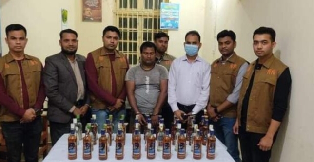 অগ্রযাত্রা সংবাদঃ মৌলভীবাজার জেলা গোয়েন্দা ও মাদক বিরোধী সেল মৌলভীবাজারের মাদকদ্রব্য উদ্ধার বিশেষ অভিযানে কমলগঞ্জ থেকে ৪০বোতল বিদেশি মদসহ মো.শাহিন আলম নামে ১জনকে গ্রেফতার করা হয়েছে। গ্রেফতারকৃত আসামী মো. শাহিন আলম (৩৬) কমলগঞ্জের ধলাইরপার এলাকার সাজিদ মিয়ার ছেলে। জেলা গোয়েন্দা সূত্রে জানাযায়,মৌলভীবাজার জেলার পুলিশ সুপার মোহাম্মদ জাকারিয়ার নির্দেশনায় ও জেলা গোয়েন্দা শাখার অফিসার ইনচার্জ সুধীন চন্দ্র দাশ এর পরিচালনায় সঙ্গীয় অফিসার এএসআই মুকুন্দ দেববর্মা, এসআই কাজী আরিফ আহমেদ ,এসআই মোহাম্মদ মাসুক মিয়া, কং/৪৪১ চন্দ্র শেখর মুখাখার্জী , কং/২৫৫ মোকারাবি আহমেদ, কং/৭০২ আবুল বাছেদ রাফি, কং/২৫৮ সুমন চন্দ্র পাল,এসআই জিতেন্দ্র বৈষ্ণব, কং/২৪২ বাপ্পন বিশ্বাসসহ মাদকদ্রব্য উদ্ধার ও বিশেষ অভিযানে মঙ্গলবার রাত ৮.৩০ ঘটিকায় কমলগঞ্জের ধলাইরপার এলাকা থেকে মো.শাহিন আলমকে ৪০বোতল বিদেশি মদসহ যাহার বাজার মূল্য ১লাখ ৮হাজার টাকা উদ্ধারপূবর্ক গ্রেফতার করা হয়।