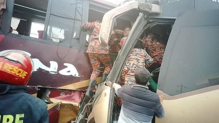 অগ্রযাত্রা সংবাদঃ ঢাকা-সিলেট মহাসড়কের রশিদপুরে এনা পরিবহন ও লন্ডন এক্সপ্রেসের মুখোমুখি সংঘর্ষে কমপক্ষে ১১ জনের প্রাণহানি হয়েছে। এ ঘটনায় দুই বাসের আরও অর্ধশতাধিক যাত্রী আহত হয়েছেন বলে জানা গেছে। তবে তাৎক্ষণিকভাবে হতাহতদের নাম-পরিচয় জানা যায়নি।