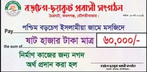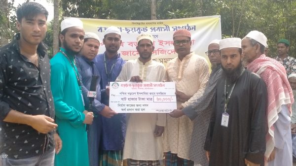 অগ্রযাত্রা সংবাদঃ কমলগঞ্জ উপজেলার বড়চেগ-ছয়কুট প্রবাসী সংগঠনের উদ্যোগে ১নং রহিমপুর ইউনিয়নের পশ্চিম বড়চেগ ইসলামিয়া জামে মসজিদের নির্মান কাজে আর্থিক অনুদান ও উক্ত সংগঠের সদস্য প্রবাসীদের সংবর্ধনা প্রদান করা হয়। বাদ জুমআ মসজিদ প্রাঙ্গনে সংগঠনের পক্ষ থেকে নগদ ৬০ হাজার টাকা মসজিদ কমিটির হাতে হস্তান্তর করা হয়। উক্ত অনুষ্ঠানে সভাপতিত্ব করেন সাবেক মেম্বার ও প্রবীণ মুরব্বি ওয়াদ উল্লাহ সাহেব, উপস্তিত ছিলেন, ভূমিদাতা সদস্য ও অর্থ সম্পাদক আব্দুর রহিম সাহেব,ইমাম ও খতিব মাওলানা আব্দুস শাকুর, মাওলানা আব্দুল আলী, সাবেক মেম্বার আজমত উল্লাহ সাহেব, ১ নং রহিমপুর ইউপি আওয়ামিলীগ এর সাংগঠনিক সম্পাদক সুলেমান আহমদ, রইছ মিয়া, আব্দুল মছব্বির,বেবুল মিয়া, ক্বারী বসির আহমদ,মসজিদ পরিচালনা কমিটির সভাপতি হারুন আহমদ , সাধারণ সম্পাদক মস্তাক আহমদ, বড়চেগ-ছয়কুট প্রবাসী সংগঠনের ৩ জনের প্রতিনিধি টিম – মাওঃ আবুল খায়ের,ক্বারি বেলাল আহমেদ, মাওলানা আব্দুল্লাহ আল নোমানসহ এলাকার গণ্যমান্য ব্যক্তিবর্গ।