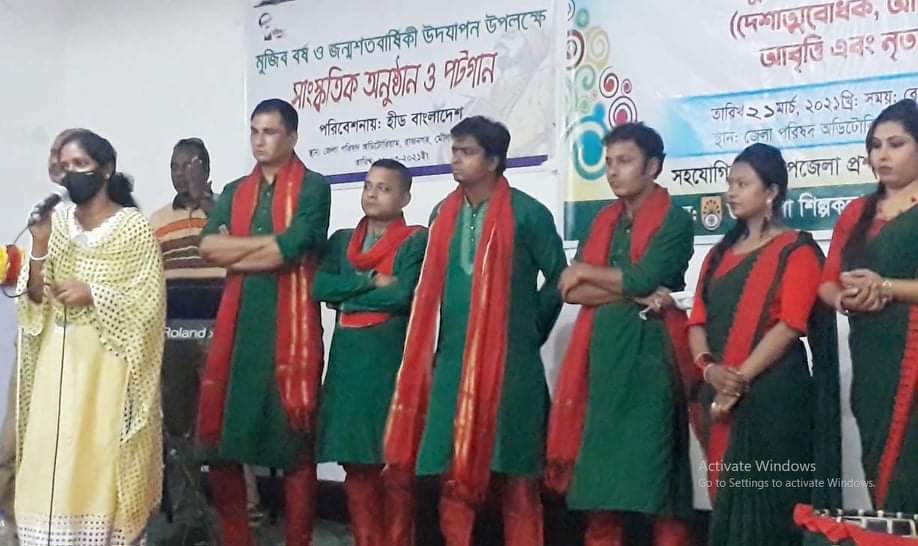 অগ্রযাত্রা সংবাদঃ : মৌলভীবাজারের রাজনগরে মুজিব বর্ষ ও মুজিব জন্মশতবার্ষিকী উদযাপন উপলক্ষে জেলা পরিষদ অডিটোরিয়ামে রাজনগর উপজেলা প্রশাসনের সহযোগিতায় হীড বাংলাদেশের পরিবেশনায় সাংস্কৃতিক অনুষ্ঠান ও পটগান অনুষ্ঠিত হয়েছে। রবিবার (২১ মার্চ) দুপুর ৩ টা থেকে সন্ধ্যা ৮ টা পর্যন্ত হীড বাংলাদেশ সমৃদ্ধি কর্মসূচির প্রোগ্রাম কোর্ডিনেটর মার্গারেট জুঁই দাসের সার্বিক তত্বাবধানে সাংস্কৃতিক ও পটগান অনুষ্ঠানে হীড সাংস্কৃতিক দলের টিম লিডার দেবাশীষ মজুমদারের পরিচালনায় দেশাত্ববোধক গান ও ড. কাজী খলীকুজ্জমান আহমদ এর ভাবনা ও পরিকল্পনায় মাদক ও তামাক সচেতনতার পটগান পরিবেশন করেন দেবাশীষ মজুমদার, শিল্পী সিগ্ধা মন্ডল, কলিম সরকার, সমিত মজুমদার, রোজিনা হক, তাপস গাইন ও অপু হালদার। সাংস্কৃতিক অনুষ্ঠানে উপস্থিত ছিলেন রাজনগর উপজেলা পরিষদের চেয়ারম্যান শাহাজাহান খান, রাজনগর উপজেলা নির্বাহী অফিসার প্রিয়াংকা পাল, রাজনগর উপজেলা সহকারী কমিশনার (ভূমি) উর্মি রায়, উপজেলা কৃষি অফিসার শাহাদুল ইসলাম, উপজেলা যুব উন্নয়ন অফিসার নজরুল ইসলাম, হীড বাংলাদেশ মাইক্রোফাইনান্স এরিয়া ম্যানেজার নুরুর রহমান, হীড বাংলাদেশ সমৃদ্ধি কর্মসূচির প্রোগ্রাম কোর্ডিনেটর মার্গারেট জুঁই দাস, প্রোগ্রাম কোর্ডিনেটর মো. নকিবুল ইসলাম, প্রোগ্রাম কোর্ডিনেটর মো. আমিনুল হক ও অন্যান্য এন জি ওর কর্মকর্তাবৃন্দ প্রমুখ।