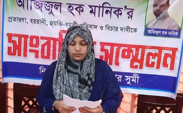 ফেনি সংবাদদাতা: ফেনীর ছাগলনাইয়া উপজেলার ঘোপাল ইউনিয়ন পরিষদ চেয়ারম্যান আজিজুল হক মানিকের বিরুদ্ধে বিয়ের প্রলোভনে ধর্ষণ, প্রতারণা, হয়রানি, সাজানো মামলায় ফাঁসানো ও হুমকির অভিযোগ এনে ও বিচার দাবিতে গৃহবধু রেহানা আক্তার সুমী সংবাদ সম্মেলন করেছেন।মঙ্গলবার বিকেলে শহরের একটি হোটেলে রেহানা আক্তার সুমী সংবাদ সম্মেলনে তার প্রতি নির্যাতন, নিপীড়ন, হুমকি ও মিথ্যা মামলায় ফাঁসানোর প্রতিকার চেয়ে প্রধানমন্ত্রী, স্বরাষ্ট্রমন্ত্রী, ফেনী-২ আসনের সংসদ সদস্য ও প্রশাসনের কাছে দাবী জানিয়েছেন।রেহানা আক্তার সুমী নারী ও শিশু নির্যাতন ট্রাইব্যুনালে দায়ের করা পিটিশন মামলা সিআইডির কাছে হস্তান্তরেরও দাবী জানান।লিখিত বক্তব্যে রেহানা আক্তার সুমী বলেন, ঘোপাল ইউনিয়নের মুহুরীগঞ্জে আমার স্বামীর বাড়ী। দাম্পত্য জীবনে অশান্তি ও স্বামীর বেপরোয়া জীবনের প্রতিকার চেয়ে ঘোপাল ইউপি চেয়ারম্যান আজিজুল হক মানিকের শরণাপন্ন হই। এটাই আমার জীবনের কাল হয়েছে। তিনি আমাকে বিয়ের মিথ্যা আশ্বাস দিয়ে টানা ৩ বছর ধর্ষণ করেছেন। বিয়ে না করে চলচাতুরির মাধ্যমে আমার সর্বস্ব লুটে নিয়ে আমাকে মেরে ফেলতে ষড়যন্ত্র করে ব্যর্থ হয়ে বিভিন্নভাবে ফাঁসানোর চেষ্টা করে। পরে আমাকে ফেনীর পেট্রেবাংলার একটি বাসায় মানিকের ক্যাডার বাদশা-১, বাদশা-২, এনাম, ফারুক, সবুজকে দিয়ে দেড়মাস আটকে রাখে। এরপর মানিক আমাকে ঢাকায় নেওয়ার কথা বলে তার গাড়িতে করে ময়মনসিংহের ফুলপুর উপজেলার একটি নিভৃত পল্লীতে নিয়ে যায়। সেখান থেকে আমাকে ভারতে পাচার করার ষড়যন্ত্র করে।এর আগে ঘোপালে বালুমহালে প্রভাব বিস্তারকে কেন্দ্র করে মারামারিতে এক প্রবাসী বাদশার ক্যাডারদের হাতে নিহত হয়। ডিবি পুলিশ মোবাইল টেকিং এর মাধ্যমে আসামি ধরতে গিয়ে আমাকে উদ্ধার করে। ফেনীর পুলিশ কোর্য়াটারে আবদুর রহিম প্রকাশ আফছার (আজিজুল হক মানিকের পরিচিত) আমাকে তার বাসায় আটকে মানিকের নির্দেশে পতিতাবৃত্তিতে বাধ্য করার চেষ্টা করে।এরপর ২০২০ সালের ৬ ফেব্রুয়ারি মানিকের ক্যাডার ইকবালের মাধ্যমে প্রাইভেটকার পাঠিয়ে আমাকে চট্টগ্রাম যেতে বলে। আমি চট্টগ্রাম গেলে পূর্ব পরিকল্পিতভাবে পুলিশের সাথে আঁতাত করে আমাকে ইয়াবা ট্যাবলেট দিয়ে ফাঁসিয়ে দেয় মানিক। ওই মামলায় আমি জেলে যাই। পরে জানতে পারি থানার তদন্তকারী কর্মকর্তা এ মামলায় আজিজুল হক মানিককে ২নং আসামি ও ইকবালকে ৩নং আসামি করে চার্জশীট দেয়।