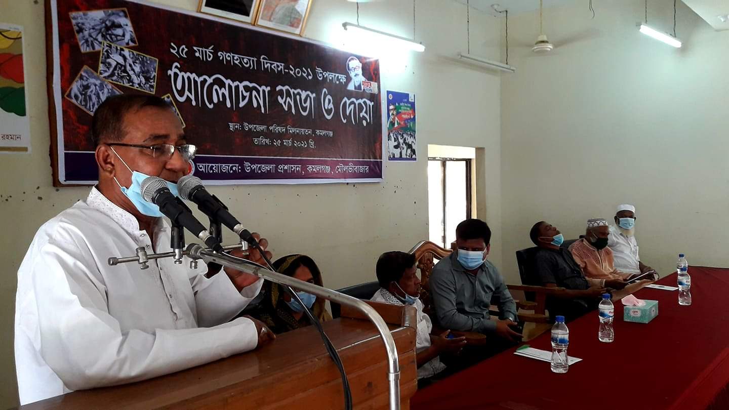 কমলগঞ্জ ঃ কমলগঞ্জ (মৌলভীবাজার) প্রতিনিধি: মৌলভীবাজারের কমলগঞ্জে উপজেলা প্রশাসনের উদ্যোগে গণহত্যা দিবস উপলক্ষে এক আলোচনা সভা ও দোয়া অনুষ্ঠিত হয়েছে।