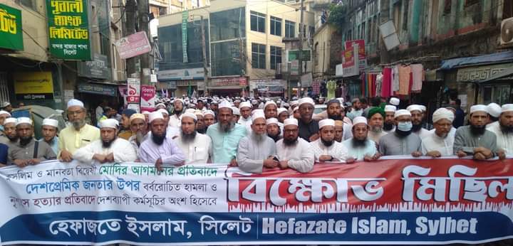 এসময় আগামীকাল রোববার (২৮ মার্চ) দেশব্যাপী সকাল-সন্ধ্যা হরতালের সমর্থনে সিলেটে হেফাজতে ইসলামের নেতাকর্মীরা শান্তিপূর্ণভাবে বিক্ষোভ মিছিল করেছে। এতে পুলিশ বাধা দেয়নি, তবে ছিলো সতর্ক অবস্থানে।