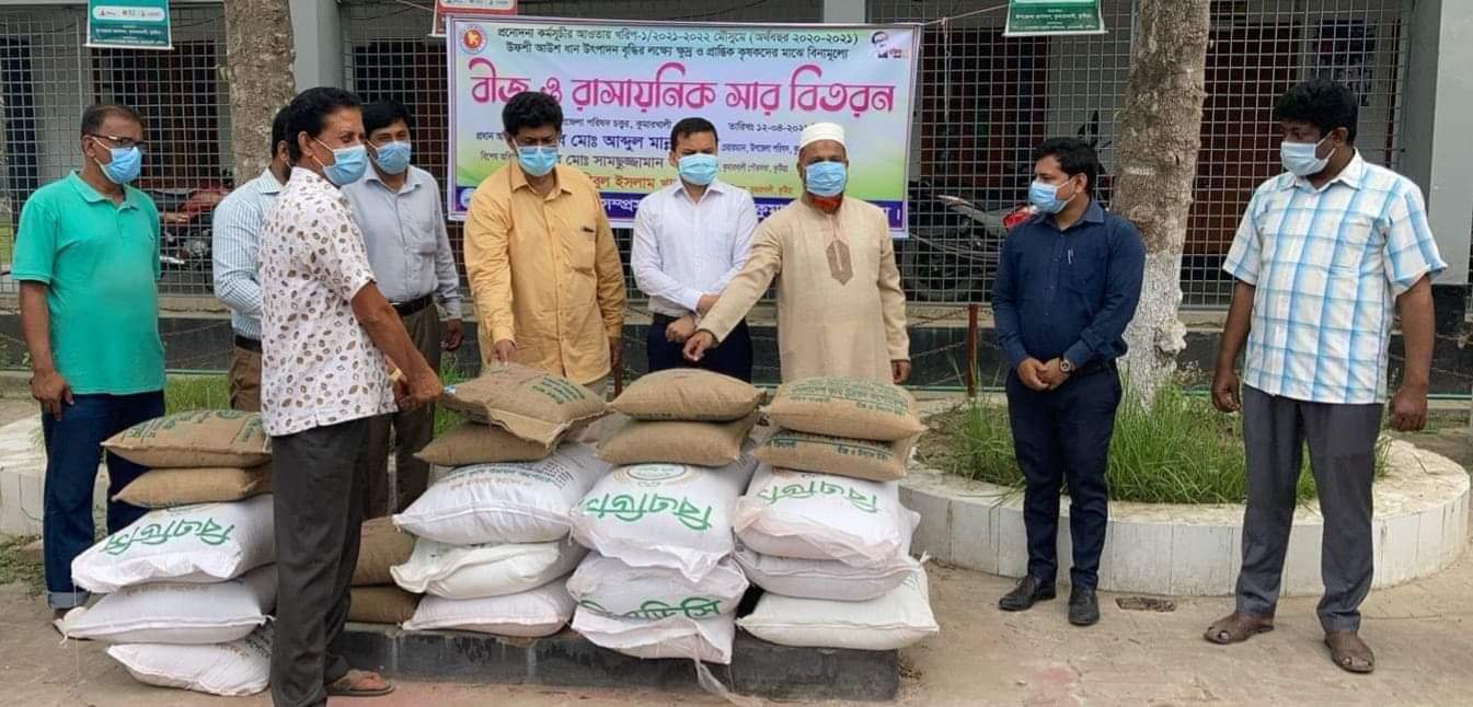 কুষ্টিয়ার কুমারখালীতে প্রনোদনা কর্মসূচীর আওতায় খরিপ-১ / ২০২১- ২০২২ মৌসুমে উফসী আউশ ধান উৎপাদন বৃদ্ধির লক্ষ্যে ক্ষুদ্র ও প্রান্তিক কৃষকদের মাঝে বিনামূল্যে বীজ ও সার বিতরণ করা হয়েছে।