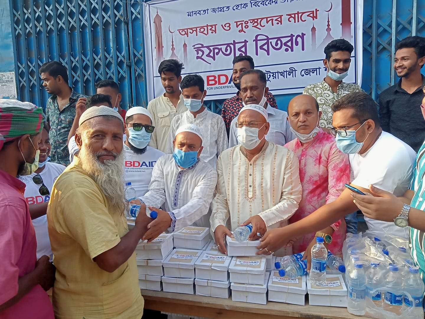 পটুয়াখালী প্রতিনিধিঃ পটুয়াখালীতে (BDAID) উদ্যোগে বিক্সা চালক,দুঃস্থ অসহায় পথচারীদের মাঝে ইফতার বিতরণ করা হয়েছে। বুধবার (২৮ এপ্রিল) বিকালে পৌরশহরের জুবিলী স্কুল সড়কে দাড়িয়ে বাংলাদেশ এসোসিয়েশন ফর ইনটেনসিভ ডেভেলপমেন্ট (BDAID) জেলা শাখার উদ্যোগে শহরের রিক্সা চালক, দু:স্থ ও অসহায় পথচারীদের মধ্যে ইফতার সামগ্রী বিতরণ করা হয়েছে।