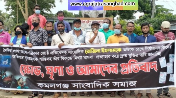 দৈনিক প্রথম আলোর জ্যেষ্ঠ প্রতিবেদক সাংবাদিক রোজিনা ইসলামকে পেশাগত দায়িত্ব পালনকালে স্বাস্থ্য মন্ত্রণালয়ে টানা পাঁচ ঘণ্টা অবরুদ্ধ রাখা, শারীরিক ও মানসিকভাবে হেনস্তা করে গ্রেপ্তারে ক্ষোভ, ঘৃণা ও তীব্র প্রতিবাদ জানিয়েছেন মৌলভীবাজারের কমলগঞ্জ সাংবাদিক সমাজ।