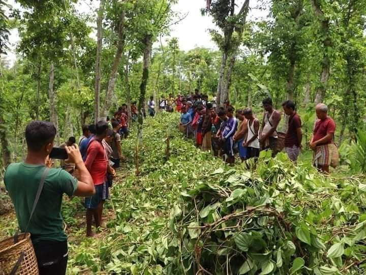 নিজস্ব প্রতিবেদক: মৌলভীবাজারের বড়লেখার ছোটলেখা চা বাগানের আগার পুঞ্জির খাসিয়াদের সহস্রাধিক উৎপাদনশীল পান গাছ দুর্বৃত্তরা কেটে ফেলেছে। এ পানের আয়েই জীবিকা নির্বাহ করে ৪৮ খাসিয়া পরিবার। রোববার রাতের আঁধারে দুর্বৃত্তের এমন নির্মমতায় তাদের পথে বসার উপক্রম। এ ঘটনায় আগার পুঞ্জি প্রধান সুখমন আমসে সোমবার দুপুরে থানায় জিডি করেছেন।