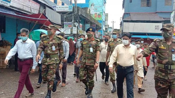 সুনামগঞ্জ প্রতিনিধি : বাংলাদেশ সেনাবাহিনীর ব্রিগেডিয়ার জেনারেল মোঃ মেসবাহ উদ্দিন আহমেদ এসপিপি এ এফ ডব্লিউ সি পিএসসি বলেছেন সরকার ঘোষিত দুই সপ্তাহ লকডাউনে যদিও কর্মজীবি অনেক মানুষ কর্মহীন হয়ে পড়েন। কিন্ত এই লকডাউনের কারণে অনেক উপকার হয়েছে। লোকজন বিনা প্রয়োজনে ঘরের বাইরে না থাকার কারণে কোভিড সংক্রমণ কম হয়েছে। আমাদের সকলের ঐকান্তিক প্রচেষ্টায় সচেতনতা অনেকাংশেই বৃদ্ধি পেয়েছে । আমরা আশাবাদী করোনা পরিস্থিতি স্বাভাবিক হবে ইনশাল্লাহ। আগামীকাল ১৫ জুলাই হতে পরিস্থিতি আবার স্বাভাবিক থাকবে তারপর ও সবাই স্বাস্থ্য বিধি মেনে চলার অনুরোধ করছি।