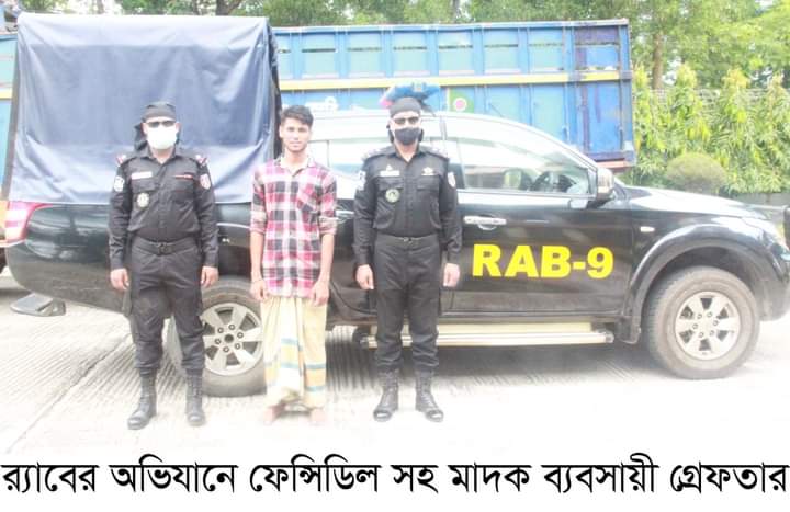 অগ্রযাত্রা সংবাদ ঃ র্যাব-৯ এর অভিযানে সিলেট জেলার কোম্পানীগঞ্জ থানাধীন এলাকা থেকে ফেন্সিডিল সহ ০১ জন পেশাদার মাদক ব্যবসায়ী গ্রেফতার। ০৫ আগস্ট ২০২১ ইং তারিখ ১২.৪০ ঘটিকার সময় গোপন সংবাদের ভিত্তিতে র্যাপিড এ্যাকশন ব্যাটালিয়ন-৯, সদর কোম্পানী (সদর ক্যাম্প, সিলেট) এর একটি আভিযানিক দল লেঃকর্ণেল আবু মুসা মোঃ শরীফুল ইসলাম, পিএসসি, এএসসি (অধিনায়ক র্যাব-৯), মেজর মাহফুজুর রহমান এবং এএসপি সোমেন মজুমদার এর নেতৃত্বে সঙ্গীয় ফোর্সসহ সিলেট জেলার কোম্পানীগঞ্জ থানাধীন রনীখাই ইউনিয়নের হায়দরী বাজারের বিলালের মুরগী দোকানের সামনে পাকা রাস্তার উপর হইতে অভিযান পরিচালনা করে ক। ফেন্সিডিল=৮০ বোতল, খ। মোবাইল=০১ টি, গ। সীম কার্ড=০২ টি জব্দসহ ধৃত আসামী ১। মোঃ মমিন (২০), পিতা- মোঃ শাহজাহান মিয়া, সাং- চামুরা, থানা- কোম্পানীগঞ্জ, জেলা- সিলেট’কে গ্রেফতার করে। পরবর্তী আইনগত ব্যবস্থা গ্রহণ করার লক্ষ্যে মাদকদ্রব্য নিয়ন্ত্রণ আইন; ২০১৮ এর ৩৬(১) এর ১৪(গ) ধারায় মামলা দায়ের পূর্বক আসামী ও জব্দকৃত আলামত সহ সিলেট জেলার কোম্পানীগঞ্জ থানায় হস্তান্তর করা হয়েছে।