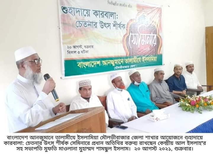 ২০ আগস্ট, শুক্রবার, বিকাল ৩ ঘটিকায় বাংলাদেশ আনজুমানে তালামীযে ইসলামিয়া মৌলভীবাজার জেলা আয়োজিত "শুহাদায়ে কারবালা: চেতনার উৎস" শীর্ষক সেমিনারে প্রধান অতিথির বক্তব্যে তিনি উপরোক্ত কথাগুলো বলেন।