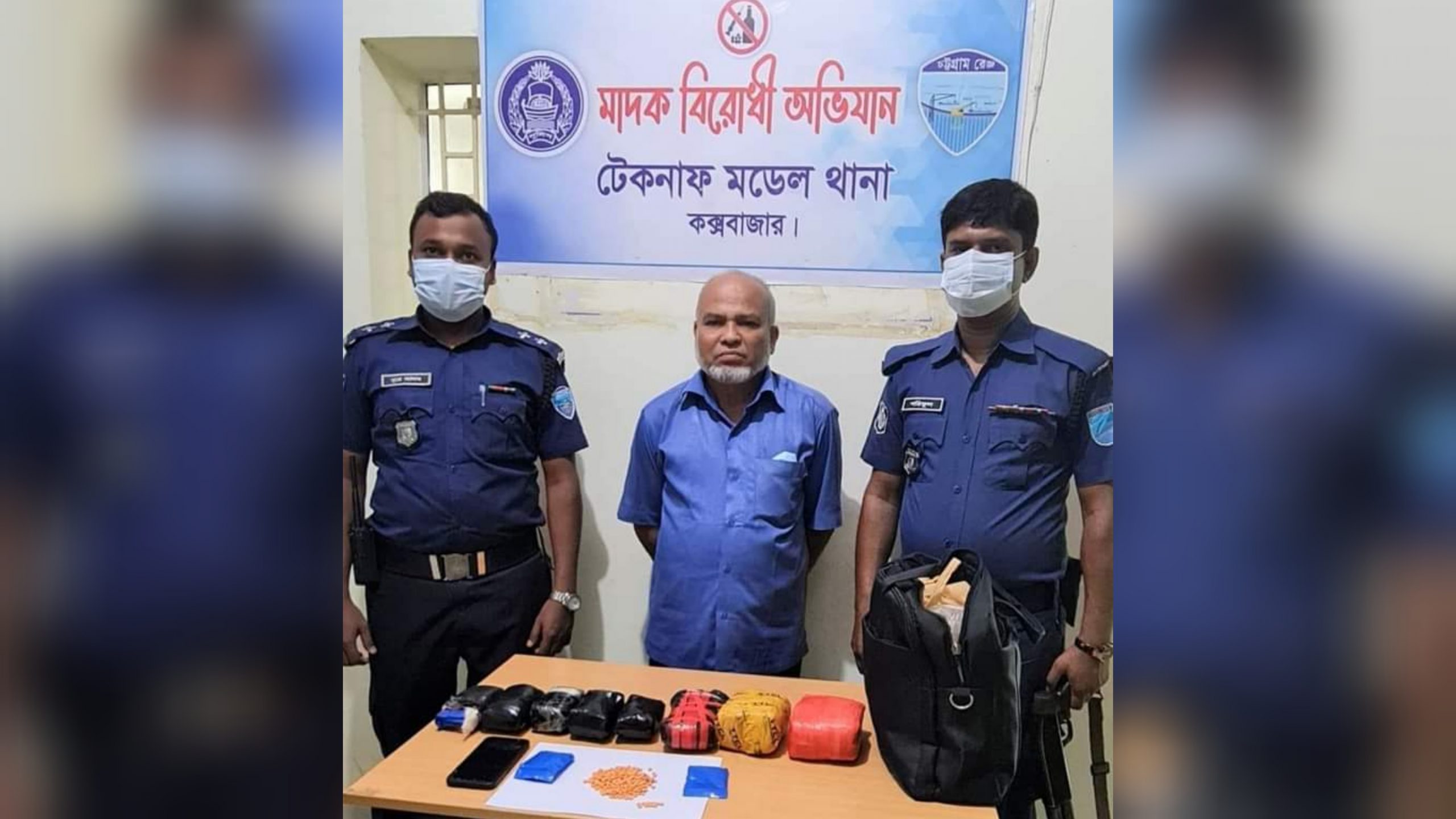 অদ্য ১৬/০৯/২০২১ খ্রিঃ তারিখ রাত অনুমান ১২:৩০ ঘটিকার সময় টেকনাফ মডেল থানা পুলিশের একটি চৌকষ টিম মাদক বিরোধী অভিযান পরিচালনা করে টেকনাফ থানাধীন টেকনাফ উপজেলা স্বাস্থ্য কমপ্লেক্স জরুরী বিভাগের সামনে গ্রেফতারকৃত আসামী ০১। আব্দুর রহিম (৫৭),( হাসপাতালের পিয়ন), পিতা- নূর আহাম্মদ, সাং- চাকমার কাটা, কচ্ছপিয়া, থানা- রামু, জেলা- কক্সবাজার এর হেফাজত হতে ২০,০০০(বিশ হাজার) পিস ইয়াবা ও মাদক কারবারে ব্যবহৃত ১টি মোবাইল সহ উপস্থিত স্থানীয় জনগন ও সাক্ষীদের সামনে জব্দ করা হয়।