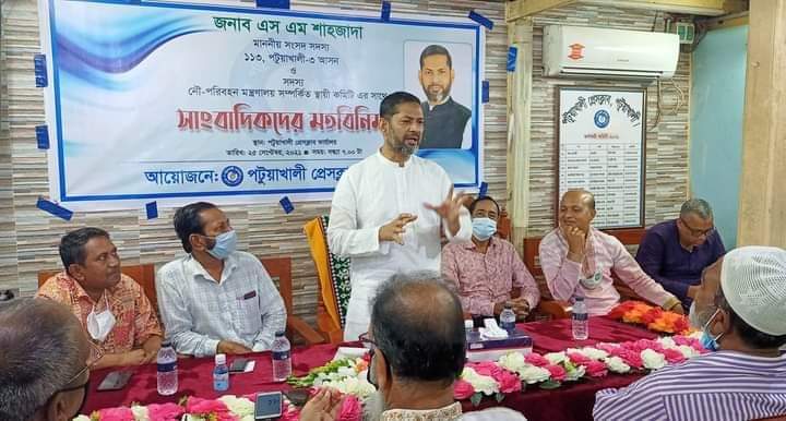 পটুয়াখালী প্রতিনিধি: টুয়াখালী প্রেসক্লাবের উন্নয়নে পাঁচ লক্ষ টাকা অনুদান হিসেবে প্রদান করেন পটুয়াখালী-৩ (গলাচিপা-দশমিনা) আসনের সংসদ সদস্য নৌ- পরিবহন মন্ত্রনালয় সম্পর্কিত স্থায়ী কমিটির সদস্য তরুন সাংসদ এস.এম শাহজাদা। ২৫ সেপ্টেম্বর শনিবার রাত ৮ টায় প্রেসক্লাবের সাংবাদিকদের সাথে মতবিনিময় সভায় প্রধান অতিথির বক্তব্য শেষে প্রেসক্লাবের উন্নয়নে পাঁচ লক্ষ টাকা অনুদান হিসেবে দেয়ার ঘোষনা করেন। পটুয়াখালী প্রেসক্লাবের সভাপতি স্বপন ব্যানার্জী এর সভাপতিত্বে ও সাধারন সম্পাদক জালাল আহমেদের সঞ্চালনায় মতবিনিময় সভায় বক্তব্য রাখেন গলাচিপা উপজেলা পরিষদের উপজেলা চেয়ারম্যান ও গলাচিপা উপজেলা আওয়ামীলীগের যুগ্ম সাধারন সম্পাদক মোঃ শাহিন শাহ। তিনিও তার বক্তব্যে প্রেসক্লাবের উন্নয়নে এক লক্ষ টাকা অনুদান দেয়ার ঘোষনা করেন। সভায় অন্যান্যের মধ্যে বক্তব্য রাখেন প্রেসক্লাবের সাবেক সভাপতি বীর মুক্তিযোদ্ধা নির্মল কুমার রক্ষিত, সাবেক সভাপতি কাজল বরন দাস, সাবেক সাধারন সম্পাদক মুফতি সালাউদ্দিন। এ সময় প্রধান অতিথির সফর সঙ্গী হয়ে উপস্থিত ছিলেন, জেলা আওয়ামীলীগের সাংগঠনিক সম্পাদক এড. উজ্জ্বল বসু, গলাচিপা উপজেলা আওয়ামীলীগের যুগ্ম সাধারন সম্পাদক মোঃ আলমগীর হোসেন, আমখোলা ইউপি চেয়ারম্যান কামরুজ্জামন মনির, চরকাজল ইউপি চেয়ারম্যান সাইদুর রহমান রুবেল, দশমিনা উপজেলা ছাত্রলীগের সভাপতিৎ সবুজ মহল্লাদার, কেন্দ্রীয় যুবলীগ নেতা মমুন আজাদ প্রমুখ।