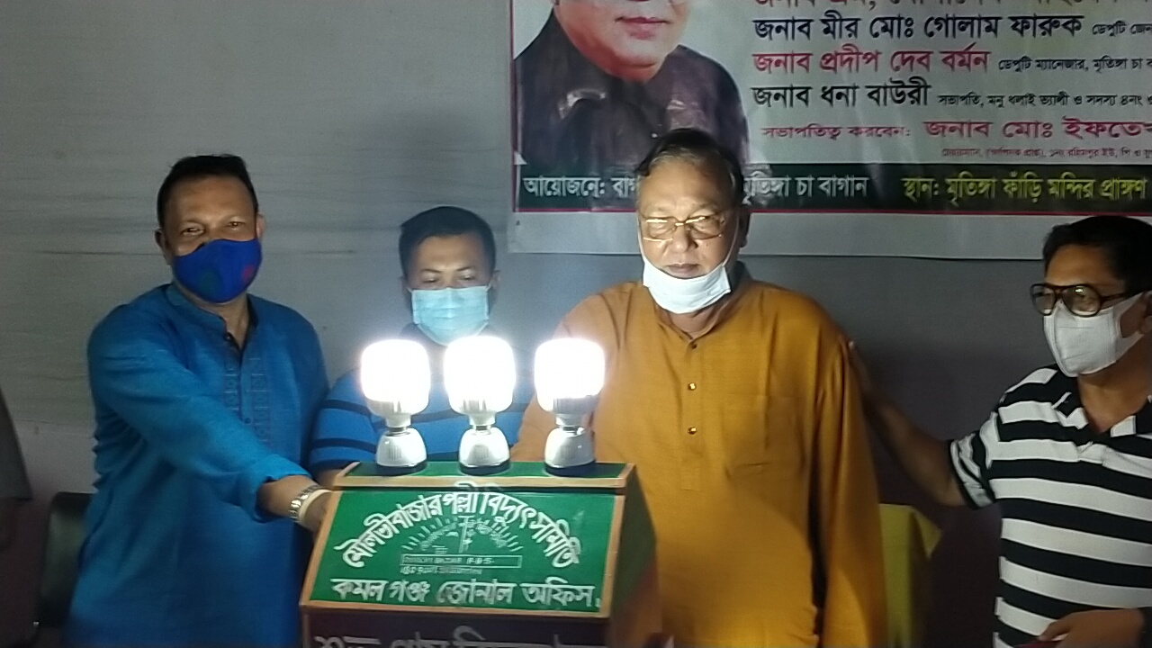 অগ্রযাত্রা সংবাদ ঃমৌলভীবাজার জেলার কমলগঞ্জ উপজেলার রহিমপুর ইউনিয়নের মৃতিঙ্গা চা বাগান (ফাঁড়ি) এলাকার ৮০ পরিবারের মাঝে নতুন বিদ্যুৎ সংযোগ এর শুভ উদ্বোধন অনুষ্ঠিত হয়। ৮ অক্টোবর শুক্রবার সন্ধায় স্বর্নপদক প্রাপ্ত চেয়ারম্যান মোঃ ইফতেখার আহমদ বদরুল এর সভাপতিত্বে রাধা শাম এর সঞ্চালনায় মৃতিঙ্গা চা বাগান পঞ্চায়েত কমিটির আয়োজনে প্রধান অতিথি হিসেবে উপস্থিত ছিলেন বীর মুক্তিযোদ্ধা উপাধ্যক্ষ ড. আব্দুস শহীদ এম.পি সভাপতি অনুমিত হিসাব সম্পর্কিত কমিটি ও সাবেক চিফ হুইপ বাংলাদেশ জাতীয় সংসদ। বিশেষ অতিথি হিসেবে উপস্থিত ছিলেন এস, এ হিলালী জিএম দেউডী চা বাগান, মীর মোঃ গোলাম ফারুক ডিজিএম, মৌপবিদ, প্রদীব দেব বর্মা ডেপুটি ম্যানেজার মৃতিঙ্গা চা বাগান, ধনা বাউরী সভাপতি মনু ধলাই ভ্যালী প্রমুখ। এছাড়াও উপস্থিত ছিলেন আওয়ামিলীগ, যুবলীগ, ছাত্রলীগের বিভিন্ন স্তরের নেতৃবৃন্দ।