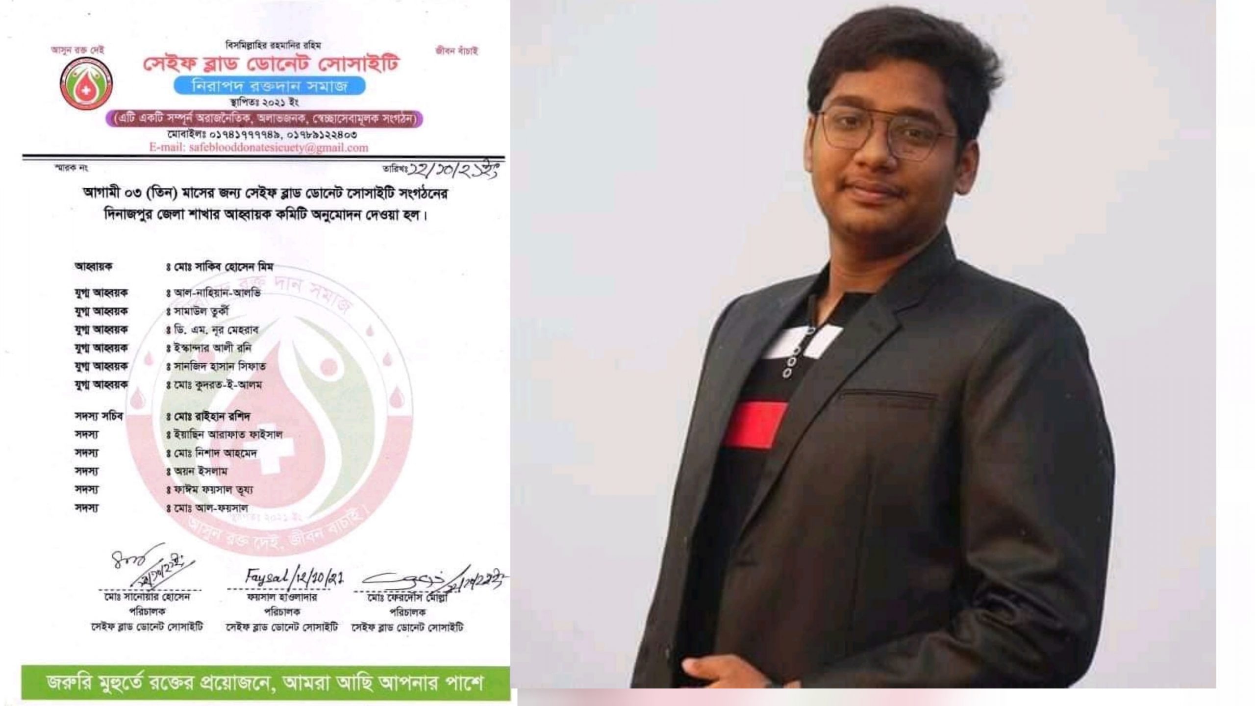 ফাঈম ফয়সাল তূয্য,মোঃ আল ফায়সাল,সেইফ ব্লাড ডোনেট সোসাইটি সংগঠনের কেন্দ্রীয় কমিটির সকল সদস্যরা দিনাজপুর জেলা শাখার আহ্বায়ক কমিটির সকল সহযোদ্ধাদের অভিনন্দন ও শুভ কামনা জানিয়েছেন, এবং চুয়াডাঙ্গা জেলার শাখার পক্ষ থেকেও আহ্বায়ক কমিটি সকল সহযোদ্ধাদের শুভেচ্ছা ও অভিনন্দন জানিয়েছেন।