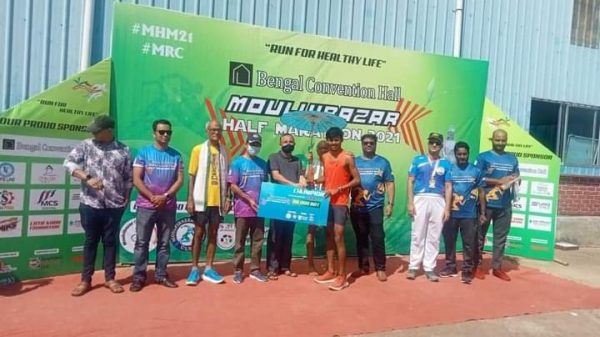 মৌলভীবাজার সাইক্লিং কমিউনিটি ও মৌলভীবাজার রানার্স ক্লাবের যৌথ আয়োজনে এবং মৌলভীবাজার জেলা ক্রীড়া সংস্থার সার্বিক সহযোগীতায় আজ (২৯ অক্টোবর) শুক্রবার বেঙ্গল কনভেনশন হল মৌলভীবাজার হাফ ম্যারাথন-২০২১ অনুষ্ঠিত হয়েছে। এবারের হাফ ম্যারাথন প্রতিযোগীতায় ৬ শত প্রতিযোগী অংশ নেন। এবারের হাফ ম্যারাথনে ২১ কিলোমিটার ও ১০ কিলোমিটার এই দুই ক্যাটাগরির দূরত্বের দৌড় হয়। সকাল সাড়ে ছয়টায় মৌলভীবাজার পৌরসভা প্রাঙ্গণের মেয়র চত্বর থেকে দৌড় শুরু হয়। ২১ কিলোমিটার ক্যাটাগরিতে মেয়র চত্বর থেকে শুরু করে বর্ষিজুড়া ইকোপার্ক সড়ক,কালেঙ্গা সড়ক,কালেঙ্গা বাজার, দেওরাছড়া চা-বাগান হয়ে কমলগঞ্জের ছয়ছিড়ি দীঘি পর্যন্ত থেকে পুনরায় মেয়র চত্বর আসতে হয়। অন্য দিকে ১০ কিলোমিটার দৌড় হয় মেয়র চত্বর থেকে একই সড়ক ধরে দেওরাছড়া চা-বাগানের একাত্তরের বধ্যভূমি হয়ে আবার মেয়র চত্বর। পরে মৌলভীবাজার জেলা স্টেডিয়ামে পুরষ্কার বিতরন করা হয়। পুরষ্কার বিতরন অনুষ্ঠানে উপস্থিত ছিলেন, পৌরসভা মেয়র ফজলুর রহমান,অতিরিক্ত পুলিশ সুপার জিয়াউর রহমান প্রমূখ। ফিনিশারদের “চা কন্যা” মেডেল দেওয়া হয় যা মৌলভীবাজার জেলার পর্যটন এবং মৌলভীবাজার জেলার প্রতিনিধিত্ব করে। এছাড়া ফিনিশারদের ক্রেষ্ট,উত্তরীয়,মেয়েদের সেলাই মেশিন দেওয়া হয় এবং অংশগ্রহনকারী সবাইকে টি-শার্ট ও মেডেল দেওয়া হয়।