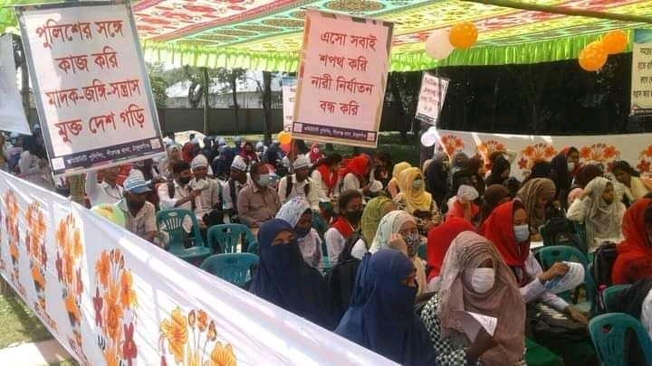 সভায় বিভিন্ন ফেস্টুন ব্যানার,দিয়ে সজ্জিত করা হয়।পুলিশের সঙ্গে কাজ করি মাদক-জঙ্গি-সন্ত্রাস মুক্ত দেশ গড়ি।এসো সবাই সফথ করি নারী নির্যাতন বন্ধ করি।