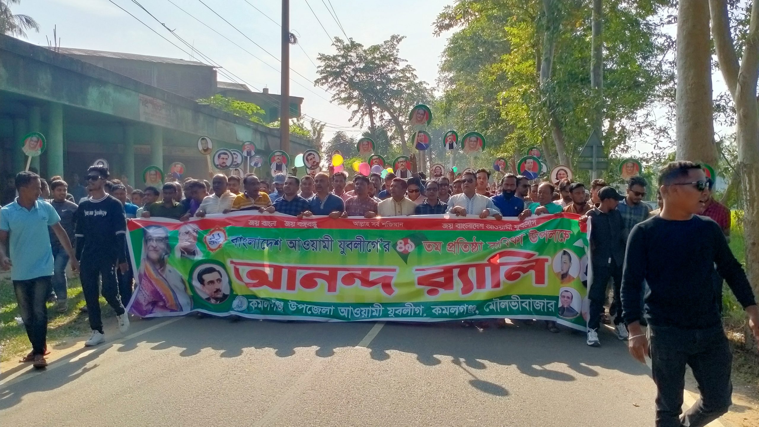 বাংলাদেশ আওয়ামী যুবলীগের ৪৯ তম প্রতিষ্ঠা বার্ষিকী উপলক্ষে বৃহস্পতিবার (১১নভেম্বর) কমলগঞ্জে বণার্ঢ্য আনন্দ শোভাযাত্রা, আলোচনা সভা অনুষ্ঠিত হয় । কমলগঞ্জ উপজেলা যুবলীগের উদ্যোগে দুপুর ১টায় ৯ টি ইউনিয়ন থেকে আগত হাজারো নেতাকর্মীদের উপস্থিতিতে আনন্দ শোভাযাত্রা শুরু হয়ে ভানুগাছ বাজার,উপজেলা ময়না চত্বর হয়ে বিভিন্ন রাস্তা প্রদক্ষিণ করে কমলগঞ্জ পৌরসভা মিলনায়তনে কমলগঞ্জ উপজেলা যুবলীগের আহবায়ক ও পৌর মেয়র জুয়েল আহমেদের সভাপতিত্বে ও যুগ্ন আহবায়ক আব্দুল মালিক বাবুল ও শায়েক আহমেদের সঞ্চালনায় আলোচনা সভায় বক্তব্য রাখেন পৌর মেয়র মেয়র জুয়েল আহমেদ প্রমুখ।