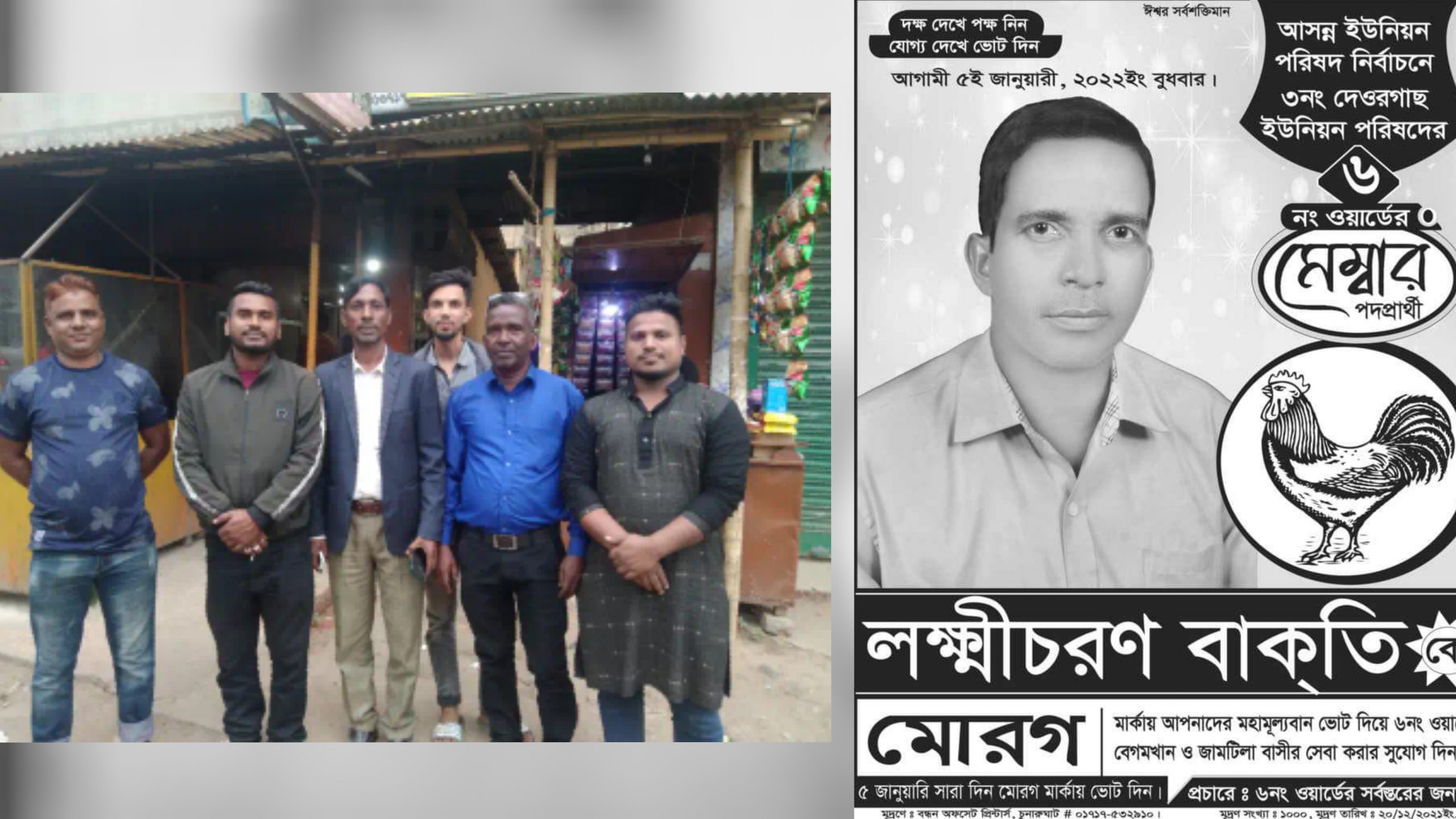 লক্ষীচরণ বাকতি । তিনি মোরগ মার্কা নিয়ে নির্বাচনে অংশগ্রহণ করছেন।