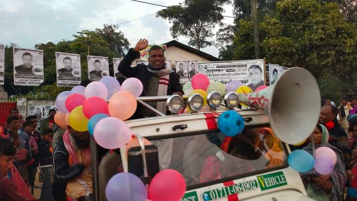 ৩য় বারের মত মেম্বার পদপ্রার্থী বাংলাদেশ চা শ্রমিক ইউনিয়নের মনু-দলই ভ্যালীর সভাপতি বিশিষ্ট ব্যবসায়ী ও সমাজ সেবক শ্রী ধনা বাউরী জনপ্রিয়তায় এগিয়ে রয়েছেন। ৫ম ধাপের ইউপি নির্বাচন মৌলভীবাজার জেলার কমলগঞ্জ উপজেলার সবকয়টি ইউনিয়নে নির্বাচন আগামী ৫ জানুয়ারি বুধবার অনুষ্ঠিত হবে। এই নির্বাচনকে ঘিরে প্রচারনার শেষদিন পর্যন্ত চলবে প্রার্থীদের দৌড়ঝাপ। এরমধ্যে ১নং রহিমপুর ইউনিয়নের ৪নং ওয়ার্ড( মৃর্তিঙ্গা চাবাগান) থেকে ৩ বারের মত মেম্বার পদপ্রার্থী ফুটবল প্রতীক নিয়ে ব্যাপক প্রচার প্রচারনা চালিয়ে যাচ্ছেন। জনপ্রিয়তায় শ্রী ধনা বাউরী এগিয়ে রয়েছেন বলে জানান মৃর্তিঙ্গা চাবাগানবাসী। সরেজমিনে গিয়ে দেখা যায়, ১নং রহিমপুর ইউনিয়নের ৪নং ওয়ার্ড (মৃর্তিঙ্গা চাবাগান) এর প্রতিটি লাইনে রয়েছে শ্রী ধনা বাউরীর ব্যাপক জনপ্রিয়তা। ভোটাররাও তার পক্ষে সাড়া দিচ্ছেন। ভোটাররাও মনের আনন্দে হাট-বাজারে শোভাযাত্রা করেন শ্রী ধনা বাউরীর পক্ষে। ভোটারদের মুখে মুখে ফুটবল প্রতীকের আলাপ আলোচনা শোনা যাচ্ছে সর্বত্র ।