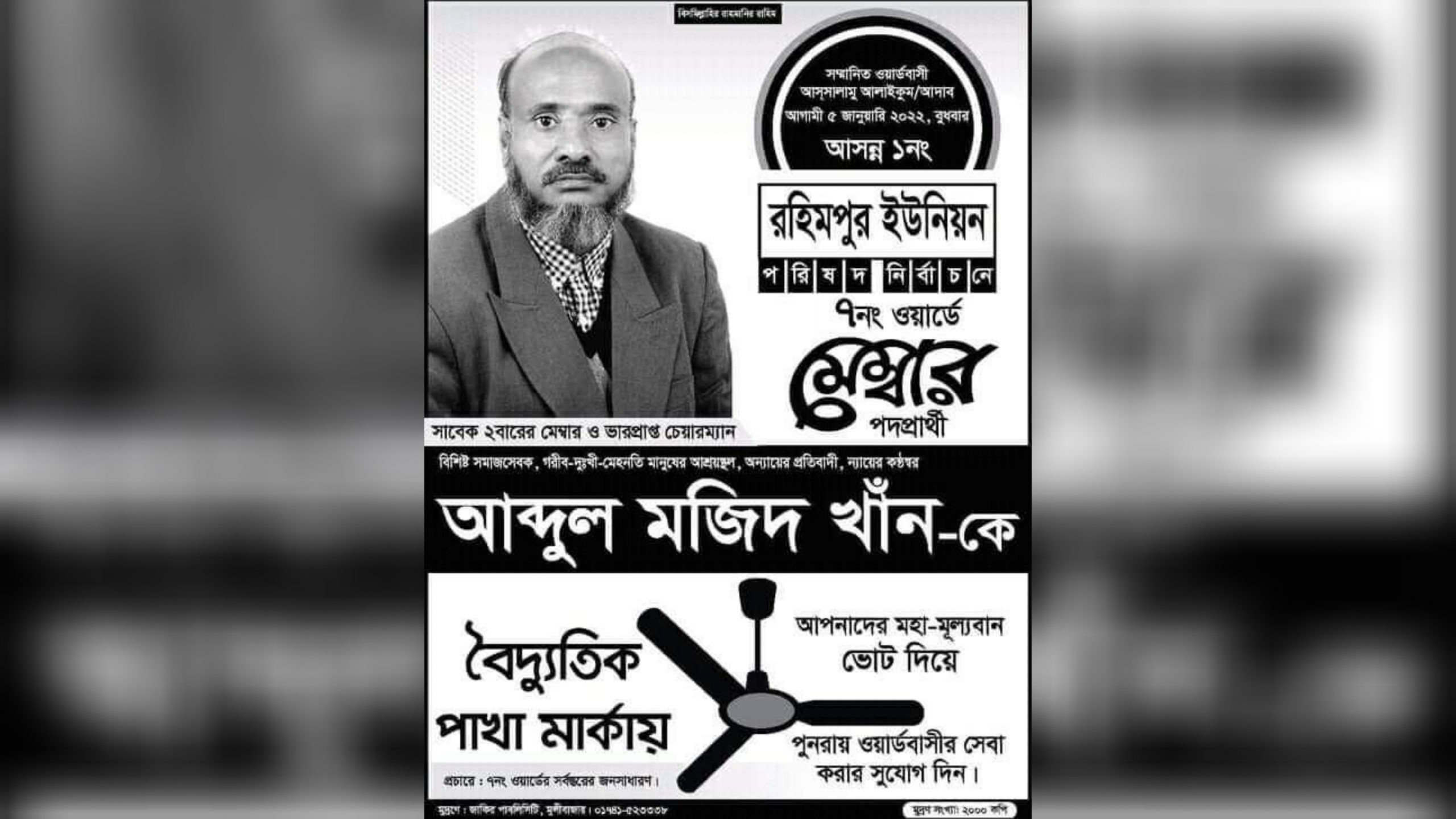 মেম্বার পদপ্রার্থী আব্দুল মজিদ খান বলেন, ১নং রহিমপুর ইউনিয়নের ৭নং ওয়ার্ডের সাধারণ মানুষ আমার সাথে আছেন। মানুষের জীবন মান উন্নয়নের জন্য আমি কাজ করে যাচ্ছি। আমার বিশ্বাস এবারো বিপুল ভোটে ৩য় বারের মত মেম্বার নির্বাচিত করবে ওয়ার্ডবাসী।