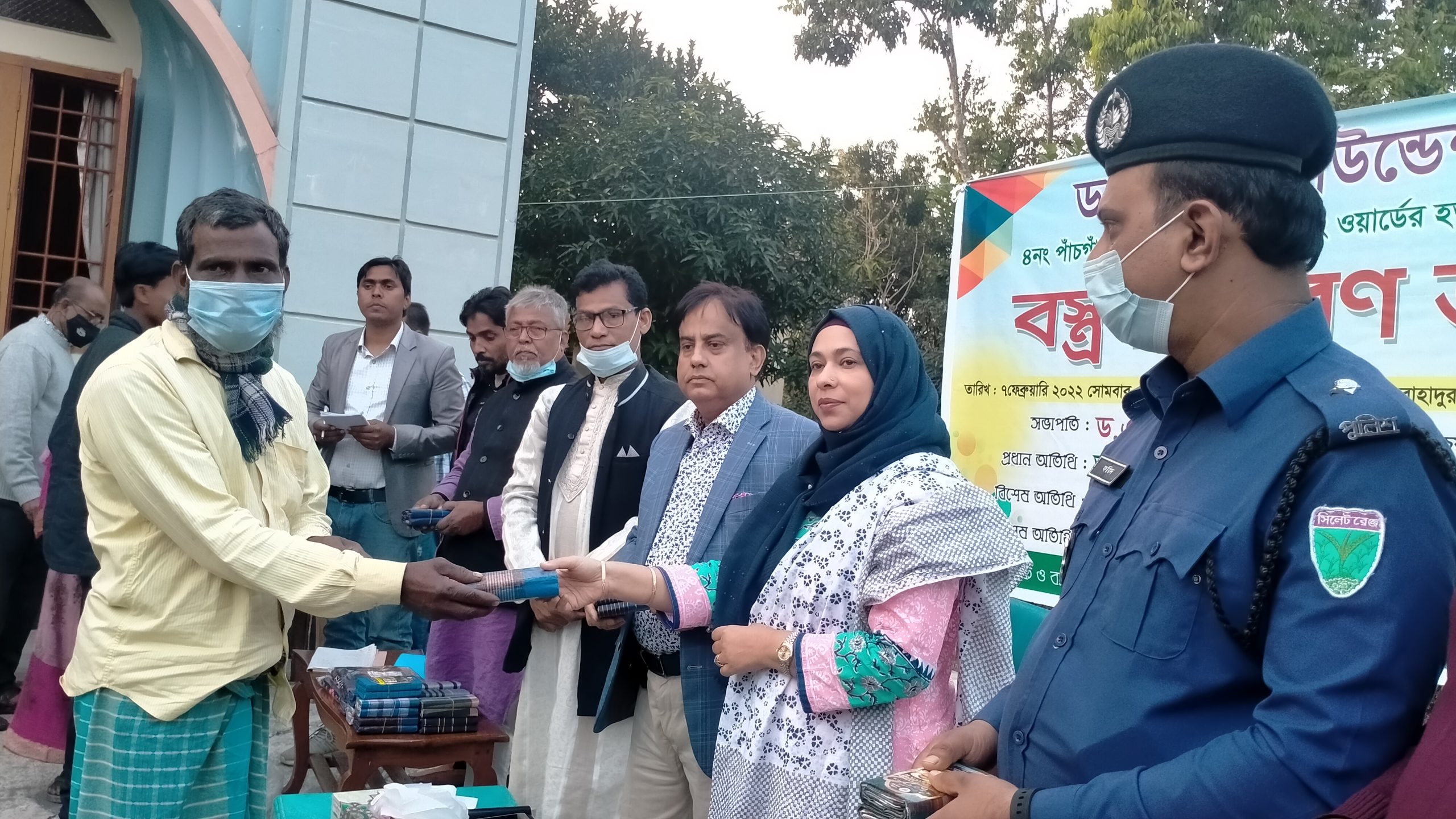 অগ্রযাত্রা সংবাদ ঃমৌলভীবাজারের রাজনগর উপজেলার ড. মৌলা ফাউন্ডেশন কর্তৃক ৪নং পাঁচগাঁও ইউনিয়ন পরিষদের ৯নং ওয়ার্ডের হতদরিদ্র ১০০ শত অসহায় মানুষের মাঝে বস্ত্র বিতরণ অনুষ্ঠান সম্পন্ন হয়েছে। ৭ ফ্রেব্রুয়ারী সােমবার বিকেলে শান্তি নিকেতন, বাহাদুরগঞ্জ, ৪নং পাঁচগাঁও ইউনিয়ন, রাজনগর, মৌলভীবাজারে। ড. মৌলা ফাউন্ডেশন এর প্রতিষ্ঠাতা ও চেয়ারম্যান ড.এম.জি মৌলা মিয়ার সভাপতিত্বে মােঃ রবিউল ইসলাম রাসেল মেম্বার এর সঞ্চালনায় প্রধান অতিথি হিসেবে উপস্থিত ছিলেন ৪নং পাঁচগাঁও ইউনিয়ন পরিষদ এর চেয়ারম্যান আলহাজ্ব মােঃ সিরাজুল ইসলাম ছানা, বিশেষ অতিথি হিসেবে উপস্থিত ড. মৌলা ফাউন্ডেশন এর ভাইস চেয়ারম্যান ফারহানা মৌলা, ৪নং পাঁচগাঁও ইউনিয়ন আওয়ামীলীগ এর সভাপতি আলহাজ্ব মােঃ রফিকুল ইসলাম প্রমুখ। এছাড়াও এলাকার গণ্যমান্য ব্যক্তিবর্গ উপস্থিত ছিলেন। অনুষ্ঠানের আয়োজক ও ব্যবস্থাপনায় ছিলেন ৪নং পাঁচগাঁও ইউনিয়ন পরিষদ এর ৯ নং ওয়ার্ড সদস্য মােঃ রবিউল ইসলাম রাসেল।