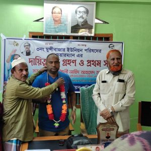 অগ্রযাত্রা সংবাদ ঃমৌলভীবাজার জেলার কমলগঞ্জ উপজেলার ৩ নং মুন্সিবাজার ইউনিয়নের নবনির্বাচিত চেয়ারম্যান বিশিষ্ট সমাজ সেবক প্রকৌশলী নাহিদ আহমদ তরফদার ১৩ই ফেব্রুয়ারী রবিবার ২০২২ইং চেয়ারম্যান ব্যাপক উৎসাহ উদ্দীপনার মধ্য দিয়ে দায়িত্ব ভার গ্রহণ করে প্রথম সভায় সভাপতি হিসেবে অংশ গ্রহণ করেন তিনি। দায়িত্বভার গ্রহণ ও প্রথম সভা অনুষ্ঠিত হয় সকাল ১১টায়। প্রকৌশলী নাহিদ আহমদ তরফদার এর সভাপতিত্বে ইউপি সচিব সরওয়ার আহমদ এর সঞ্চালনায়