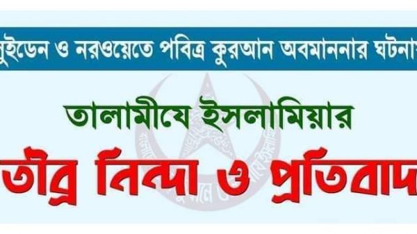 সোমবার সন্ধ্যায় তালামীযে ইসলামিয়ার কেন্দ্রীয় সভাপতি আখতার হোসাইন জাহেদ ও কেন্দ্রীয় সাধারণ সম্পাদক হুময়ূনুর রহমান লেখন এক যৌথ বিবৃতিতে সম্প্রতি সুইডেন ও নরওয়েতে মুসলমানদের ধর্মীয় গ্রন্থ পবিত্র কুরআন অবমাননার ঘটনায় তীব্র নিন্দা ও প্রতিবাদ জানিয়ে বলেন, এ ঘটনাগুলো বিশ্বের মুসলমানদের হৃদয়কে ক্ষতবিক্ষত করেছে।