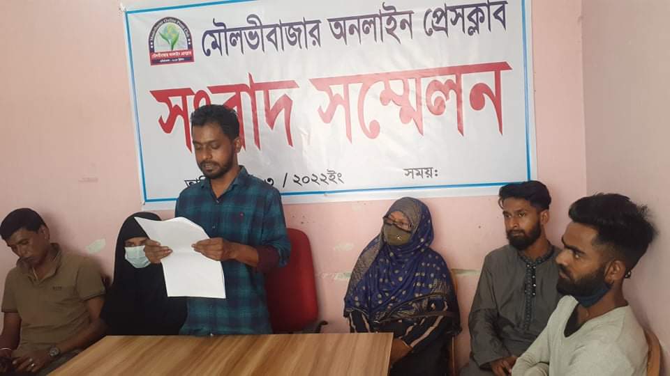 মশাহিদ আহমদ ঃ প্রকৃত রহস্য উদঘাটন করে মিথ্যা মামলার দায় হইতে অব্যাহতি এবং দোষীদের দৃষ্টান্তমূলক শাস্তির দাবীতে মৌলভীবাজার অনলাইন প্রেসক্লাবে ভুক্তভোগী পরিবারের সংবাদ সম্মেলন অনুষ্টিত হয়েছে আজ ১৪ মার্চ দুপুরে। লিখিত বক্তব্য জানান- গত ৫ মার্চ আকবরপুর সাকিনস্থ আঞ্চলিক কৃষি গবেষনা ইনিষ্টিটিউট এর সামনের পাকা রাস্তার পাশে কিছু লোক জড়ো দেখেন। প্রকৃত ঘটনা সর্ম্পকে স্থানীয় লোকজন তাদেরকে বলেন- প্রাইভেট কারের ভেতরে জনৈক একটি ছেলে ও মেয়ে অর্ধউলঙ্গ অবস্থায় অনৈতিক কর্মকান্ডে লিপ্ত রয়েছে। উপস্থিত জনতার কাছে তাদের দোষ স্বীকার (ভিডিওসহ) করে এবং শ্রীগ্রই উভয়ে বিবাহ বন্ধনে আবদ্ধ হইবে বলে আশ্বস্থ করেন। সেই সময় উপস্থিত জনতা ও ছেলে মেয়ে ঘটনাস্থল ত্যাগ করেন। কিন্তুু ঐদিন দিবাগত রাত অনুমান ২:৩০ ঘটিকায় মৌলভীবাজার জেলা গোয়েন্দা শাখার এস.আই মোঃ মাজহারুল ইসলাম ও তার সঙ্গীয় ফোর্স ৬নং একাটুনা ইউনিয়নের মনোহর কোনা গ্রামের জুনেদ আহমদ এর পুত্র রুবেল আহমদ (২৪)কে হাতকড়া পড়াইয়া টানিয়া হেছড়াইয়া ঘর থেকে বাহির করে গাড়ীতে উটায়। ঐ রাতে ১২নং গিয়াস নগর ইউনিয়নের আকবরপুর গ্রামের তারেক মিয়ার পুত্র রুবেল মিয়া (২৫)কে গ্রেফতার করা হয়। পরবর্তীতে প্রতিশোধ পরায়ন হয়ে প্রাইভেট কারের ভেতরে অনৈতিক কাজে লিপ্ত থাকা ৩নং কামাল পুর ইউনিয়নের খালিশপুর গ্রামের রবিন আলীর পিতা জমসেদ আলী বাদী হয়ে রুবেল গংদের আসামী করে প্রতিশোধ নেওয়ার হীনমানসে মৌলভীবাজার মডেল থানায় অপহরন মামলা মামলা (নং- ১১/৫৬, তারিখ ঃ ০৬/০৩/২২ইং) দায়ের করেন। পরবর্তীবে বিজ্ঞ আদালত তাদের অবস্থা বিবেচনায় উক্ত আসমাীদের জামিন দেন। লিখিত বক্তব্য আরো জানান- বাদী ও গোয়েন্দ পুলিশের চালান ফরওয়াডিং অনুযায়ী বিগত ০৫/০৩/২০২২ ইং দুপুর ০১:১১ ঘটিকায় বাদীর ছেলে মোঃ রবিন আলীকে অপহরন করিয়া রুবেল ও তার বন্ধুরা মিলে মুক্তিপন দাবী করে এবং বিকাশের মাধ্যমে ১৪,৭০০/=টাকা আদায় করে। প্রকৃত পক্ষে উক্ত টাকা রবিন ও তার প্রমিকা উভয়ে বিবাহ বন্ধনে আবদ্ধ হওয়ার জন্য আনা। গোয়েন্দা পুলিশের চালান ফরওয়াডিং অনুযায়ী ভিকটিমকে ০১:১১ ঘটিকায় অপহরণ করা হয়েছে। পরবর্তীতে ভিকটিমের মোবাইল লকেশন সনাক্তের মাধ্যমে ঐদিন দিবাগত রাত অর্থাৎ ০৬/০৩/২০২২ইং রাত ০২:১০ ঘটিকা পর্যন্ত ভিকটিম রুবেল গংদের হাতে জিম্মি ছিল। অথচ ভৈরবগঞ্জ বাজারের স্বাদ ফুড প্রতিষ্ঠানের সি.সি ক্যামেরায় ধারণকৃত ফুটেজ অনুযায়ী ভিকটিম রবিন আলী বিগত ০৫/০৩/২০২২ইং সন্ধ্যা ০৭:১৮ ঘটিকায় জেলা গোয়েন্দা শাখার এস.আই মো: মাজহারুল ইসলাম ও তার সহকারী কনষ্টেবল আব্দুল বাছিদ রাফি ও উক্ত মামলার ৩নং স্বাক্ষী আফনান আল ওহির সাথে বসে হাসি খুশি মনোভাবে খাবার খাচ্ছেন। একজন অপহহৃ