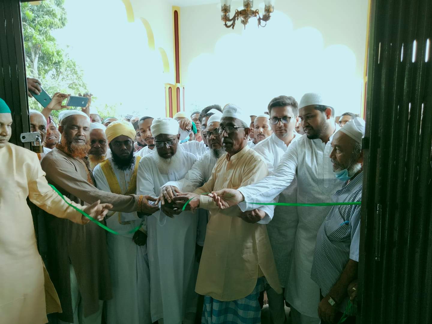 বিশিষ্ট সমাজসেবক ও মসজিদ কমিটির সভাপতি ইউসুব আলী ফিতা কেটে মসজিদের নবযাত্রা ঘোষণা করেন।