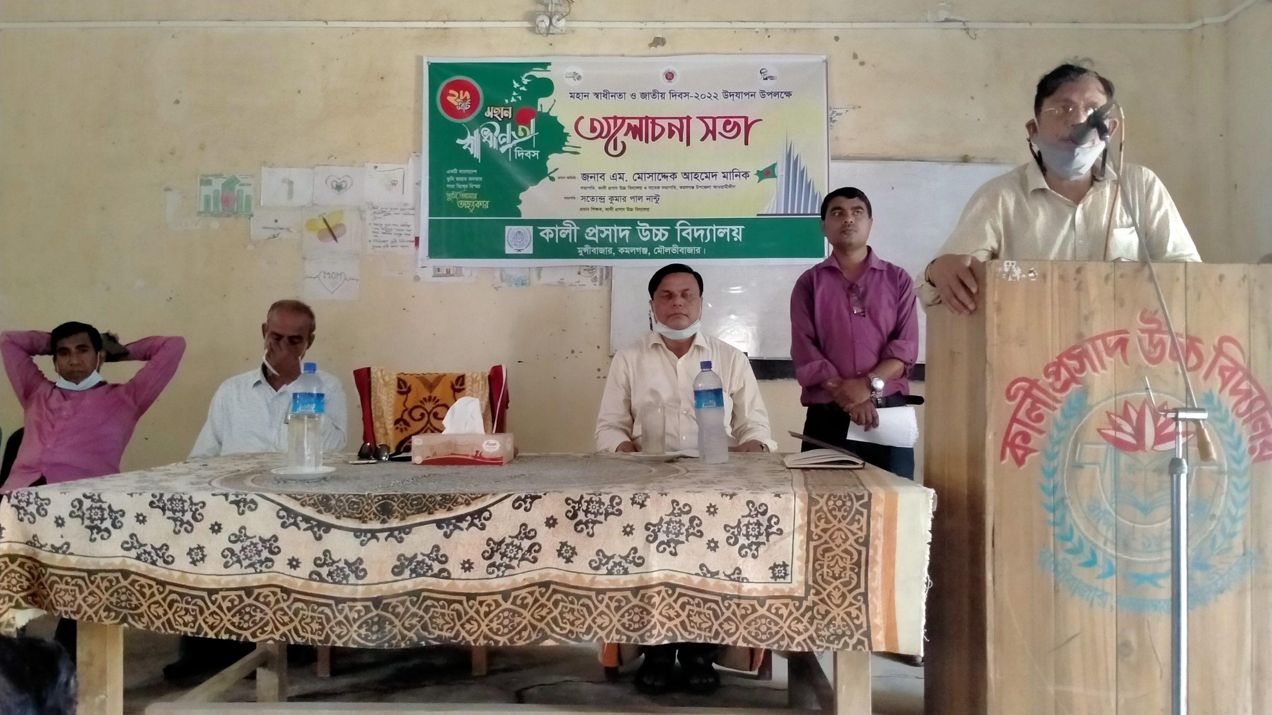 সর্বকালের সর্বশ্রেষ্ঠ বাঙালি জাতির পিতা বঙ্গবন্ধু শেখ মুজিবুর রহমানের নেতৃত্বে দীর্ঘ আন্দোলন-সংগ্রামের স্ফুলিঙ্গে উজ্জীবিত সশস্ত্র জনযুদ্ধের মধ্য দিয়ে অর্জিত হয়েছে আমাদের মুক্তির ইতিহাস-স্বাধীনতার ইতিহাস। দীর্ঘ ৯ মাস সশস্ত্র যুদ্ধ শেষে ১৬ ডিসেম্বর বিজয় অর্জনের মাধ্যমে স্বাধীন সার্বভৌম বাংলাদেশ শত্রুমুক্ত হয়। কষ্টার্জিত স্বাধীনতা ও সার্বভৌমত্ব সংহত করার নতুন শপথে বলীয়ান হওয়ার দিন আজ। বঙ্গবন্ধুকন্যা প্রধানমন্ত্রী শেখ হাসিনার নেতৃত্বে উন্নয়নের অগ্রযাত্রায় একের পর এক মাইলফলক অর্জন এবারের স্বাধীনতা দিবস উদযাপনকে মহিমান্বিত করেছে। কালীপ্রসাদ উচ্চবিদ্যালয়ের প্রধান শিক্ষক সত্যেন্দ্র কুমার পাল নান্টুর সভাপতিত্বে ফরিদ আহমদের সঞ্চালনায় আলোচনা সভায় প্রধান অতিথি হিসেবে বক্তব্য রাখেন কালী প্রসাদ উচ্চবিদ্যালয়ের ম্যানেজিং কমিটির সভাপতি বীর মুক্তিযোদ্ধা এম মোসাদ্দেক আহমেদ মানিক, বিশেষ অতিথি হিসেবে বক্তব্য রাখেন ননি গোপাল দেবনাথ, কমলগঞ্জ উপজেলা নবীনলীগ এর সভা জনি চৌধুরী প্রমুখ। এছাড়াও উপস্থিত ছিলেন কালীপ্রসাদ উচ্চবিদ্যালয়ের শিক্ষক আব্দুল মতিন,অনুপ ভট্রাচার্য, শংকর রঞ্জন সিংস,পলাশ চন্দ্র পাল,সজল রায়, রাজিব দাশ প্রমুখ। এছাড়াও এলাকার গণ্যমান্য ব্যক্তিবর্গ ও অবিভাবক বৃন্দ উপস্তিত ছিলেন।