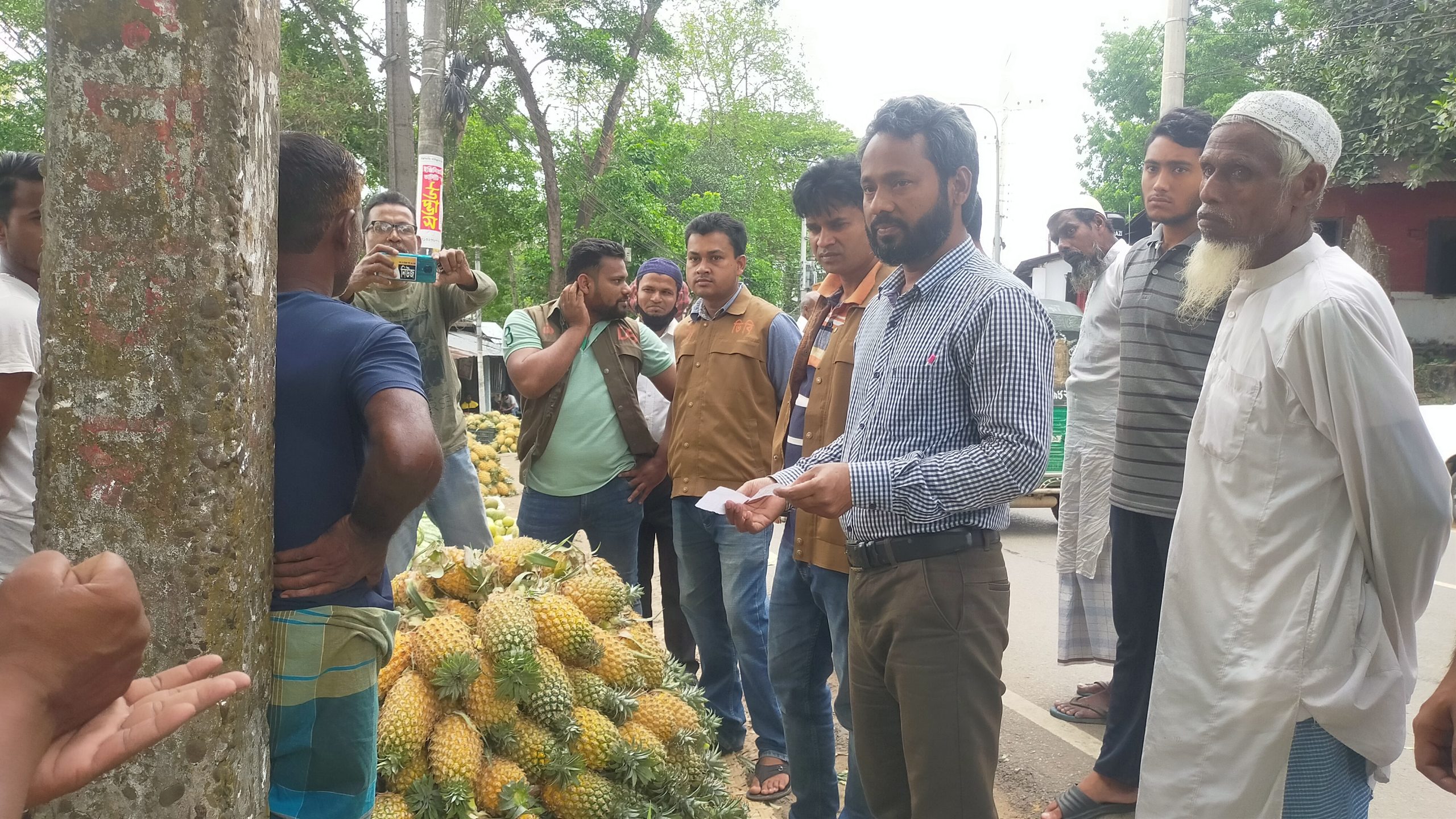 অগ্রযাত্রা সংবাদ ঃ পবিত্র রমজান উপলক্ষে নিত্য প্রয়োজনীয় পণ্য সামগ্রী, ফল এবং ইফতার সামগ্রী ন্যায্য দামে এবং স্বাস্থ্যকর পরিবেশে খাদ্য পণ্য প্রাপ্তি নিশ্চত করার লক্ষে কাজ করছে বাণিজ্য মন্ত্রণালয়ের সার্বিক তত্ত্বাবধানে থাকা জাতীয় ভোক্তা অধিকার সংরক্ষণ অধিদপ্তর। সেই লক্ষে জাতীয় ভোক্তা অধিকার সংরক্ষণ অধিদপ্তরের মৌলভীবাজার জেলা কার্যালয়ের সহকারী পরিচালক মো: আল-আমিন এর নেতৃত্বে জেলা গোয়েন্দা পুলিশ ফোর্সের সহযোগিতায় আজ রবিবার (১০ এপ্রিল ২০২২) মৌলভীবাজার সদর উপজেলার কোর্ট মার্কেট, চৌমুহনা, কোর্ট রোড, টিসি মার্কেটসহ বিভিন্ন জায়গায় নিত্য প্রয়োজনীয় পণ্য সামগ্রী, লেবুর ও সবজির পাইকারী ও খুচরা ব্যবসায়ীদের প্রতিষ্ঠান, ফল ব্যবসার প্রতিষ্টান, খাদ্য উৎপাদনকারী প্রতিষ্ঠান মনিটরিং ও সচেতনতামূলক কার্যক্রম পরিচালনা করা হয়। উক্ত তদারকি অভিযানে পাকা ক্রয় ও বিক্রয় ভাউচার সংগ্রহ না করা, অস্বাস্থ্যকর উপায়ে খাদ্য পণ্য সংরক্ষণ করা, অতিরিক্ত দামে মৌসুমী ফল তরমুজ, খেজুরসহ অন্যান্য খাদ্য পণ্য বিক্রয় করাসহ বিভিন্ন অনিয়মের দায়ে কোর্ট মার্কেটে অবস্থিত জাহেদ মিয়ার ফল ভান্ডারকে ১ হাজার টাকা, কোর্ট রোডে অবস্থিত স্বাদ এন্ড কোংকে ২০ হাজার টাকা, চৌমুহনায় অবস্থিত মক্কা ফল ভান্ডারকে ৫ শত টাকা, মায়ের দোয়া ফল ভান্ডারকে ১৫ হাজার টাকা, টিসি মার্কেটে অবস্থিত সাগর ষ্টোরকে ১ হাজার টাকা জরিমানা আরোপ ও তা আদায় করা হয়। অভিযানে মোট ৫ টি প্রতিষ্ঠানকে সর্বমোট ৩৭ হাজার ৫ শত টাকা জরিমানা ও তা আদায় করা হয়।