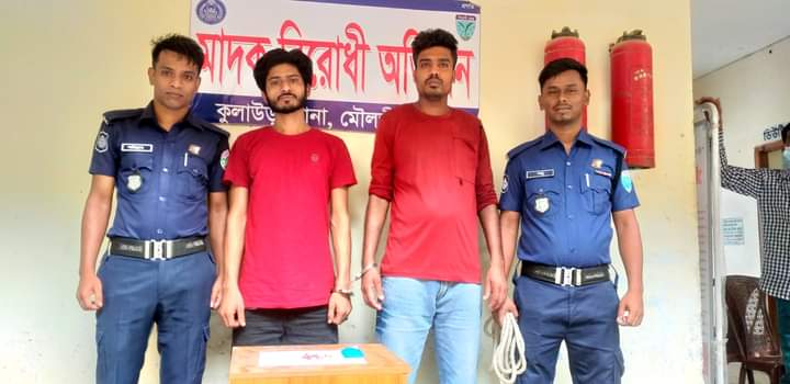 অফিসার ইনচার্জ জনাব বিনয় ভূষন রায় এর সার্বিক দিক নির্দেশনায় পুলিশ পরিদর্শক (তদন্ত) মোঃ আমিনুল ইসলামের নেতৃত্বে গত ১৬ মে ২০২২ খ্রিস্টাব্দ তারিখে কুলাউড়া থানার এসআই হাবিবুর রহমান সঙ্গীয় অফিসারসহ মাদক বিরোধী অভিযান পরিচালনাকালে গোপন তথ্যের ভিত্তিতে কুলাউড়া পৌরসভাধীন স্টেশন রোড সংলগ্ন ইস্টার্ন রেস্টুরেন্ট এন্ড সুইটমিট এর নিচতলার কেবিন রুম হইতে মাদক ব্যবসায়ী ১. জমির আলী (২৯), পিতা-সিরাজ আলী, সাং-মিরাশী, থানা-চুনারুঘাট, জেলা-হবিগঞ্জ, বর্তমান ঠিকানা: গ্রাম-জয়পাশা, থানা-কুলাউড়া, জেলা-মৌলভীবাজার, ২। মাসুম আহমেদ (৩০), পিতা-মোঃ আব্দুর রহিম, সাং-জয়পাশা, থানা-কুলাউড়া, জেলা-মৌলভীবাজার‘দ্বয়কে গ্রেফতার করিয়া আসামীদ্বয়ের হেফাজত হইতে ৫১ পিস ইয়াবা ট্যাবলেট উদ্ধার করেন। গ্রেফতারকৃত আসামীদ্বয়ের বিরুদ্ধে মাদকদ্রব্য আইনে নিয়মিত মামলা রুজু করে বিজ্ঞ আদালতে সোর্দ করা হয়েছে।কুলাউড়া থানাকে মাদকমুক্ত করার লক্ষে মাননীয় পুলিশ সুপার মহোদয়ের নির্দেশে থানা পুলিশের মাদক বিরোধী অভিযান অব্যাহত থাকবে বলে জানান অফিসার ইনচার্জ বিনয় ভূষন রায়।