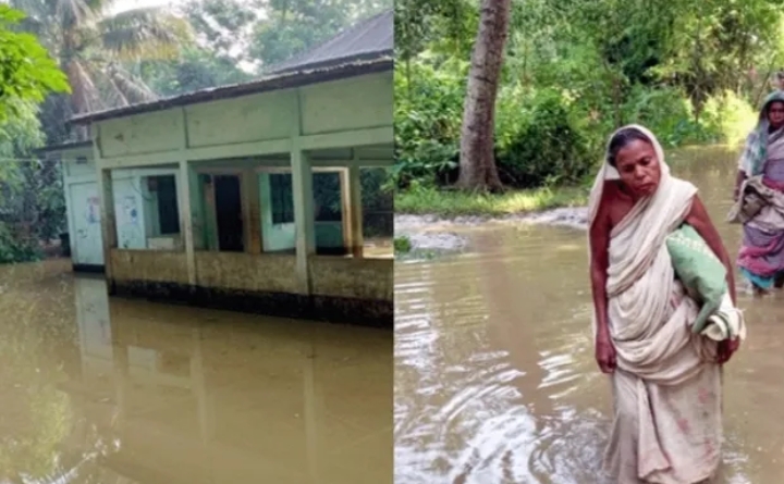 রাজনগর প্রতিনিধি ঃ উজান থেকে নেমে আসা ঢলে কুশিয়ারা নদীর তীর উপচে মৌলভীবাজারের রাজনগর উপজেলার ছয়টি গ্রাম প্লাবিত হয়েছে। এতে পানিবন্দি হয়ে পড়েছে উপজেলার উত্তরভাগ ইউপি ওই গ্রামগুলোর ৬০০ পরিবার। নিচু এলাকার ঘরবাড়ি নিমজ্জিত হওয়ায় ভোগান্তিতে রয়েছেন তিন হাজার মানুষ।স্থানীয় সূত্রে জানা যায়, উপজেলার উত্তরভাগ ইউপি’র কুশিয়ারা নদীকূলের কামালপুর, চিক্কা, কেশরপাড়া, সুনামপুর, সুরিখাল ও আমনপুর এ ছয়টি গ্রামের নিচু বাড়িঘর নিমজ্জিত রয়েছে। গ্রামীণ রাস্তাঘাটসহ শাক-সবজির খেত পানির নিচে তলিয়ে গেছে।সুরিখাল গ্রামের মশাহিদ আলী বলেন, গত তিনদিন ধরে আমরা পানিবন্দি হয়ে পড়েছি। রাস্তাঘাট ডুবে গেছে। এতে স্বাভাবিক চলাচল যোগাযোগ অনেকটা ভেঙে পড়েছে।একই গ্রামের মুকন্দ বিশ্বাসের সাথে কথা বললে বলেন, আমার বাড়ির চারদিক জলমগ্ন হয়ে আছে। বাড়িটি উঁচু করে তোলায় রেহাই পেয়েছি। বাড়ির পাশে লাগানো ১০ শতকের ঝিঙ্গে, বরবটি ও ঢেঁড়স খেত পানির নিচে তলিয়ে গেছে।আমনপুর গ্রামের কুশিয়ারা পারের সুচিত্রা দেবী বলেন, আমরা ৩/৪ দিন ধরে পানিবন্দি। কেউ আমাদের দেখতে আসেনি কোন রকম সরকারী অনুদান ও এখন পর্যন্ত পাইনি।আমনপুর গ্রামের বৃদ্ধা তছবিরুন বিবি (৬৫) বলেন, চারদিকে পানি আর পানি। তাই এখন আর গ্রামে গ্রামে গিয়ে ভিক্ষা করতে পারি না। হাঁটু সমান পানি ভেঙ্গে অনেক দূর যেতে হয়।উত্তরভাগ ইউপি চেয়ারম্যান দিগেন্দ্র সরকার (চঞ্চল) বলেন, কুশিয়ারা নদীর তীরবর্তী কয়েকটি গ্রামে বন্যা দেখা দিয়েছে। আমরা বন্যার কথা প্রশাসনকে জানিয়েছি। এখনো কোনো ত্রাণ ও বরাদ্দ হয়নি।রাজনগর উপজেলা নির্বাহী অফিসার (ভারপ্রাপ্ত) বাবলু সুত্রধর জানান, আমরা স্থানীয় জনপ্রতিনিধিদের সঙ্গে যোগাযোগ রেখেছি। বিষয়টি পানি উন্নয়ন বোর্ডকে জানানো হয়েছে।