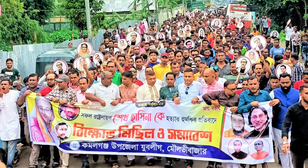 প্রতিবাদ সভা শেষে বিক্ষোভ মিছিল নিয়ে কমলগঞ্জ উপজেলা আওয়ামী লীগের প্রতিবাদ সমাবেশে অংশ নেয় যুবলীগ। পৌর এলাকার ভানুগাছ বাজারের চৌমুহনা চত্বরে উপজেলা আওয়ামী লীগের সভাপতি আসলম ইকবাল মিলনের সভাপতিত্বে অনুষ্ঠিত প্রতিবাদ সমাবেশে বক্তব্য রাখেন উপজেলা আওয়ামী লীগের সাধারন সম্পাদক এডভোকেট এ এস এম আজাদুর রহমান সহ দলের বিভিন্ন পর্যায়ের নেতৃবৃন্দ।