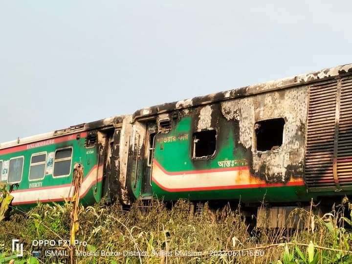 শনিবার (১১জুন) ঢাকা থেকে ছেড়ে আসা সিলেটগামী আন্তঃনগর ট্রেন ৭০৯ পারাবত এক্সপ্রেসের পাওয়ার কারে আগুন লাগার খবর ছড়িয়ে পড়ে সামাজিক যোগাযোগ মাধ্যম ফেসবুকে। এসময় পাওয়ার কার এবং চ ও ঙ বগিসহ মোট তিনটি বগি আগুনে পুড়ে ছাই হয়ে যায়।