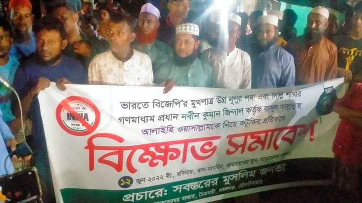 ভারতের ক্ষমতাসীন দল বিজেপির মূখপাত্র কর্তৃক মহানবী হযরত মুহাম্মদ (সা.) এর শানে কটুক্তি ও চরম অবমাননাকর মন্তব্যের প্রতিবাদে বিক্ষোভ মিছিল অনুষ্ঠিত হয়। ১২ জুন রবিবার,বাদ মাগরিব কমলগঞ্জ উপজেলার রহিমপুর ইউনিয়নের আতুরের ঘর বাজারে সর্বস্তরের জনসাধারণের ব্যানারে এ বিক্ষোভ সমাবেশ অনুষ্ঠিত হয়। আতুরেরঘর বাজার জামে মসজিদের ইমাম হেফাজত নেতা মাওঃ মাসুক আহমদ এর সভাপতিত্বে কমলগঞ্জ উপজেলা তালামিযের সহ সাংগঠনিক সম্পাদক হাফিজ আলমাছুর রহমান ও রহিমপুর ইউনিয়ন তালামীযের সভাপতি কাবির মাহমুদ এবং রহিমপুর তালামীযের সাবেক দায়িত্বশীল হোছাইন আহমেদের যৌথ সঞ্চালনায় বক্তব্য রাখেন আনজুমানে আল ইসলাহ কমলগঞ্জ উপজেলা শাখার সাংগঠনিক সম্পাদক মাওঃ নজরুল ইসলাম ফারুক,