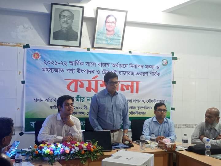 আজ ১৬ জুন ২০২২ খ্রিঃ জেলা মৎস্য কর্মকর্তার কার্যালয়, মৌলভীবাজারে নিরাপদ মৎস্য ও মৎস্যজাত পণ্যের উৎপাদন ও টেকসই বাজারজাতকরণ বিষয়ক কর্মশালা অনুষ্ঠিত হয়। এই অনুষ্ঠানে প্রধান অতিথি হিসেবে উপস্থিত ছিলেন জেলা প্রশাসক মৌলভীবাজার মীর নাহিদ আহসান। এরপর তিনি জাতীয় শুদ্ধাচার পুরস্কার ২০২১-২২ প্রদান করেন এবং মোবাইল এ্যাপস 'মৎস্য অভয়ারণ্য' উদ্বোধন করেন। এসময় জেলা মৎস্য কর্মকর্তা, মৌলভীবাজার উপস্থিত ছিলেন।