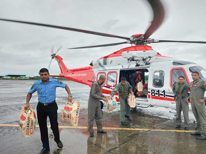 বন্যা পরিস্থিতি মোকাবিলায় সেনাবাহিনী ও নৌবাহিনীর পাশাপাশি এবার কাজ শুরু করেছে বাংলাদেশ বিমানবাহিনী। ত্রাণ বিতরণ ও বন্যার্তদের উদ্ধার করার লক্ষে দুই ধাপে হেলিকপ্টারের মাধ্যমে বন্যাকবলিত এলাকা পর্যবেক্ষণ করেন বিমানবাহিনীর বিশেষ দল।
