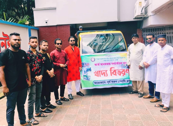 কমলগঞ্জ উপজেলার কালেঙ্গা গ্রামের উদীয়মান তরুণ যুবকদের সংগঠন" সূর্য তরুণ স্পোর্টিং ক্লাব" এর পক্ষ থেকে জুড়ি উপজেলায় বানভাসী ৬০০ মানুষের মাঝে বিরিয়ানি কেক বিশুদ্ধ পানি