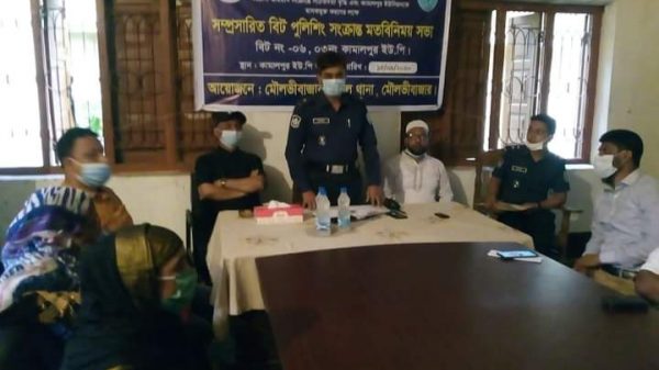 মৌলভীবাজার প্রতিনিধি :: পুলিশ ও জনগনের দুরত্ব কমানোর লক্ষ্যে মৌলভীবাজার জেলার পুলিশ সুপারের সার্বিক দিক নির্দেশনায় অদ্য ১৫/০৯/২০২০ তারিখ সকাল ১১.০০ ঘটিকায় মৌলভীবাজার সদর উপজেলার ০৩নং কামালপুর ইউনিয়ন অডিটরিয়ামে বিট পুলিশিং নিয়ে এক মতবিনিময় সভা অনুষ্ঠিত হয়।উক্ত সভায় অফিসার ইনচার্জ মোঃ ইয়াছিনুল হক, মাদক, নারী ও শিশু নির্যাতন প্রতিরোধ সহ আইনী সহায়তা প্রত্যাশী সবাইকে নিজ নিজ সঠিক ও সত্য বক্তব্য সরাসরি পুলিশের নিকট উপস্থাপন করার জন্য অনুরোধ করেন। কোনভাবেই কোন টাউট বাটপার, দালাল ও স্বার্থান্বেসি কারও প্ররোচনায় যেন কেউ না পড়ে সেই বিষয়ে সকল জনপ্রতিনিধি,স্থানীয় গন্যমান্য ব্যাক্তিবর্গ ও সচেতন নাগরিকদের দৃষ্টি আকর্ষণ করেন।০৩নং কামালপুর ইউনিয়নের চেয়ারম্যান ফয়সাল আহমেদ এর সভাপতিত্বে উক্ত সম্প্রসারিত বিট পুলিশিং অনুষ্ঠানে প্রধান অতিথি হিসেবে উপস্থিত ছিলেন মৌলভীবাজার মডেল থানার অফিসার ইনচার্জ মোঃ ইয়াছিনুল হক, বিট অফিসার এসআই/ মোঃ আজিজুর রহমান নাঈম,ইউপি আওয়ামীলীগ সভাপতি আপ্পান আলী, কমিউনিটি পুলিশিং সেক্রেটারী জোসেফ আহমেদ, কামালপুর বাজার কমিটির সভাপতি সহ ইউনিয়ন পরিষদের সম্মানিত সদস্যবৃন্দ,কর্মকর্তা,কর্মচারী,গ্রামপুলিশ ও বিভিন্ন শ্রেণি পেশার জনসাধারণ।