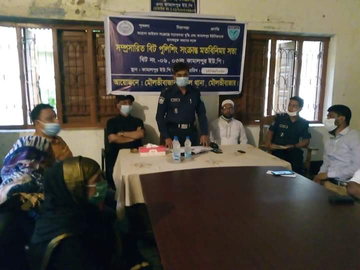 মৌলভীবাজার প্রতিনিধি :: পুলিশ ও জনগনের দুরত্ব কমানোর লক্ষ্যে মৌলভীবাজার জেলার পুলিশ সুপারের সার্বিক দিক নির্দেশনায় অদ্য ১৫/০৯/২০২০ তারিখ সকাল ১১.০০ ঘটিকায় মৌলভীবাজার সদর উপজেলার ০৩নং কামালপুর ইউনিয়ন অডিটরিয়ামে বিট পুলিশিং নিয়ে এক মতবিনিময় সভা অনুষ্ঠিত হয়।উক্ত সভায় অফিসার ইনচার্জ মোঃ ইয়াছিনুল হক, মাদক, নারী ও শিশু নির্যাতন প্রতিরোধ সহ আইনী সহায়তা প্রত্যাশী সবাইকে নিজ নিজ সঠিক ও সত্য বক্তব্য সরাসরি পুলিশের নিকট উপস্থাপন করার জন্য অনুরোধ করেন। কোনভাবেই কোন টাউট বাটপার, দালাল ও স্বার্থান্বেসি কারও প্ররোচনায় যেন কেউ না পড়ে সেই বিষয়ে সকল জনপ্রতিনিধি,স্থানীয় গন্যমান্য ব্যাক্তিবর্গ ও সচেতন নাগরিকদের দৃষ্টি আকর্ষণ করেন।০৩নং কামালপুর ইউনিয়নের চেয়ারম্যান ফয়সাল আহমেদ এর সভাপতিত্বে উক্ত সম্প্রসারিত বিট পুলিশিং অনুষ্ঠানে প্রধান অতিথি হিসেবে উপস্থিত ছিলেন মৌলভীবাজার মডেল থানার অফিসার ইনচার্জ মোঃ ইয়াছিনুল হক, বিট অফিসার এসআই/ মোঃ আজিজুর রহমান নাঈম,ইউপি আওয়ামীলীগ সভাপতি আপ্পান আলী, কমিউনিটি পুলিশিং সেক্রেটারী জোসেফ আহমেদ, কামালপুর বাজার কমিটির সভাপতি সহ ইউনিয়ন পরিষদের সম্মানিত সদস্যবৃন্দ,কর্মকর্তা,কর্মচারী,গ্রামপুলিশ ও বিভিন্ন শ্রেণি পেশার জনসাধারণ।