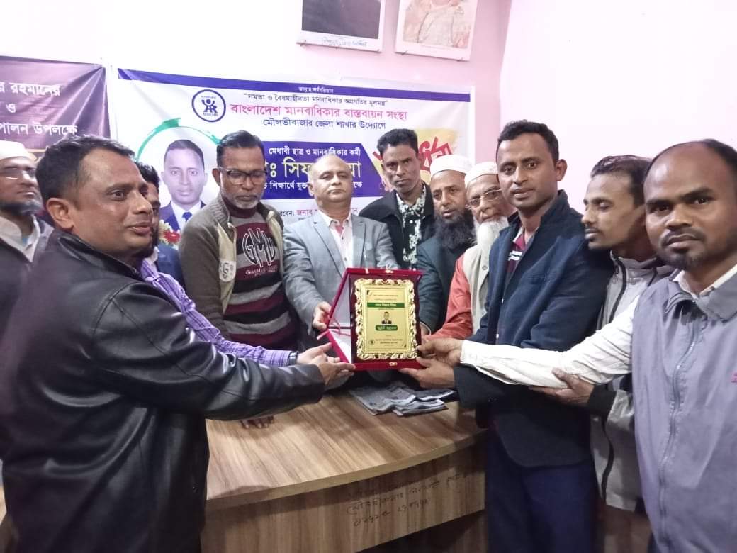 মৌলভীবাজার প্রতিনিধি ঃ মৌলভীবাজারে বাংলাদেশ মানবাধিকার বাস্তবায়ন সংস্থা, মৌলভীবাজার জেলা শাখা‘র উদ্যোগে মেধাবী ছাত্র ও মানবাধিকার কর্মী মোঃ সিফন মিয়া এর উচ্চ শিক্ষার্থে যুক্তরাজ্য গমণ উপলক্ষে সংবর্ধনা ও স্মৃতি স্বারক প্রদান করা হয়েছে সংগঠনের অস্থায়ী কার্যালয়ে গত ২৩ ডিসেম্বর বিকালে। সিংকাপন আপ্তাব উদ্দিন উচ্চ বিদ্যালয় এর প্রধান শিক্ষক মোতাহের হোসেন ভুঁইয়া এর সভাপতিত্বে ও বাংলাদেশ মানবাধিকার বাস্তবায়ন সংস্থা, মৌলভীবাজার জেলা শাখা‘র কার্যনির্বাহী সদস্য সাংবাদিক চিনু রঞ্জন দাশ তালুকদার এর সঞ্চালনায় আয়োজিত সংবর্ধনা ও স্মৃতি স্বারক প্রদান অনুষ্ঠানে সংবর্ধিত অতিথি হিসাবে বক্তব্য রাখেন-মেধাবী ছাত্র ও মানবাধিকার কর্মী মোঃ সিফন মিয়া। অথিডু হিসাবে বক্তব্য রাখেন- আন্তর্জাতিক মানবাধিকার দুর্ণীতি বিরোধী সোসাইটি, সিলেট বিভাগীয় পরিচালক মোঃ জোসেফ আলী চৌধুরী, দীপ্ত নিউজ সম্পাদক সিনিয়র সাংবাদিক দুরুদ আহমদ, এ.বি.এল এ ওয়েলফেয়ার এসোসিয়েশন ইউকে বাংলাদেশ সভাপতি তাওহিদ ইসলাম, বিশিস্ট সমাজসেবক আঃ সামাদ। অন্যান্যদের মধ্যে বক্তব্য রাখেন- তৃর্ণমূল নারী উদ্যেক্তা, (গ্রাসরুটস) সভাপতি শ্যামলী সুত্রধর, আবু মোঃ মির্জা জামান, এনআর মিডিয়া সম্পাদক ও প্রকাশক নাসরিন আক্তার প্রিয়া, আলোকিত সকাল পত্রিকার ষ্টাফ রির্পোটার শাহ মোঃ ফজলুর রহমান, সাংবাদিক রিপন আহমদ, বাংলাদেশ মানবাধিকার বাস্তবায়ন সংস্থা, মৌলভীবাজার জেলা শাখা‘র অর্থ সম্পাদক মোঃ জিল্লুর রহমান, কার্যনির্বাহী সদস্য মাও ঃ শরীফ আহমদ, মোঃ আব্দুর রহমান, বিজয় সাহা, রাজন দেবসহ জেলা শাখা ও অঙ্গসংগঠনের সদস্যবৃন্দ। বক্তারা বিভিন্ন স্মৃতি তুলে ধরেন এবং মেধাবী ছাত্র ও মানবাধিকার কর্মী মোঃ সিফন মিয়া এর উচ্চ শিক্ষার্থে যুক্তরাজ্য গমণ উপলক্ষে সংবর্ধনা শেষে স্মৃতি স্বারক প্রদান করেন।
