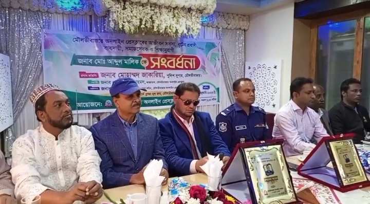 মৌলভীবাজার প্রতিনিধি ঃ মৌলভীবাজার অনলাইন প্রেসক্লাবের আজীবন সদস্য, বৃটেন প্রবাসী, বিশিষ্ট ব্যবসায়ী, সমাজসেবক ও শিক্ষানুরাগী মোঃ আব্দুল মালিক-কে সংবর্ধনা প্রদান করা হয়েছে শহরের অভিজাত ওয়েস্টার্ন রেষ্টুরেন্ট এর হল রুমে আজ ৪ ফেব্রুয়ারী দুপুরে। মৌলভীবাজার অনলাইন প্রেসক্লাবের আহবায়ক মোঃ সিতার আহমদ এর সভাপতিত্বে ও সদস্য সচিব ও মশাহিদ আহমদ এর সঞ্চালনায় আয়োজিত অনুষ্ঠানে প্রধান অতিথি হিসাবে ছিলেন- মৌলভীবাজার পুলিশ সুপার মোহাম্মদ জাকারিয়া এর পক্ষে- অতিরিক্ত পুলিশ সুপার (প্রশাসন ও অর্থ) হাসান মোহাম্মদ নাছের রিকাবদার। সংবর্ধিত অতিথি ছিলেন- মৌলভীবাজার অনলাইন প্রেসক্লাবের আজীবন সদস্য মোঃ আব্দুল মালিক। বিশেষ অতিথি হিসাবে উপস্থিত ছিলেন- মুক্তিযুদ্ধ বিষয়ক গবেষক, সিনিয়র সাংবাদিক সরওয়ার আহমদ, বিশিষ্ট সমাজসেবক ও নাট্য ব্যক্তিত্ব খালেদ চৌধুরী, মৌলভীবাজার প্রেসক্লাব এর সহ-সভাপতি এডভোকেট নুরুল ইসলাম শেপুল, দৈনিক মৌমাছি কন্ঠ পত্রিকার সম্পাদক ও প্রকাশক শেখ সিরাজুল ইসলাম সিরাজ, শেখ বোরহান উদ্দিন রহঃ ইসলামী সোসাইটি (বিআইএস) প্রতিষ্ঠাতা চেযারম্যান এম. মুহিবুর রহমান মুহিব। বক্তব্য রাখেন- ছিলেন- কুলাউড়া শ্রীপুর উচ্চ বিদ্যালয়ের প্রধান শিক্ষক মো.আয়ুব আলী, সিনিয়র সাংবাদিক দুরুদ আহমদ, সিলেট বিভাগীয় প্রেসক্লাব এর সহ-সভাপতি জোসেফ আলী চৌধুরী, কবি আব্দুল হাই ইদ্রিসী, কমলকুড়ি পত্রিকার সম্পাদক পিন্টু দেবনাথ, কমলগঞ্জ অনলাইন প্রেসক্লাব সভাপতি এমএ চৌধুরী জয়, এ.বি.এলএ ওয়েলফেয়ার এসোসিয়েশন (ইউকে) বাংলাদেশ সভাপতি তাওহিদ ইসলাম, সমাজসেবক ইঞ্জিনিয়ার মনসুর আহমদ মনসুর, বাংলাদেশ সাংবাদিক কল্যাণ সংগঠনের সাধারণ সম্পাদক শাহ মোহাম্মদ রাজুল আলী, মঈনুল হক, এড. জগদীশ, সাংবাদিক অঞ্জন প্রসাদ রায় চৌধুরী, তিমির বনিক, রুপক দত্ত, চিনু রঞ্জন তালকুদার, এনআর মিডিয়া সম্পাদক ও প্রকাশক নাছরিন আক্তার প্রিয়া শাহ মোঃ ফজলুর রহমান, ইমরান আহমদ, রাসেদ আহমদ, জাহেদুল ইসলাম পাপ্পু, আব্দুল মুকিত ইমরাজ, গৌবিন্দ মল্লিক, আলাল আহমদ, আলিম আল-মুনিম প্রমুখ। অনুষ্ঠানে ক্লাবের প্রধান অতিথি, সংবর্ধিত ও বিশেষ অতিথিবৃন্দকে ফুলের তোড়া ও সম্মাননা স্মারক তুলে দেন মৌলভীবাজার অনলাইন প্রেসক্লাব নেতৃবৃন্দ।